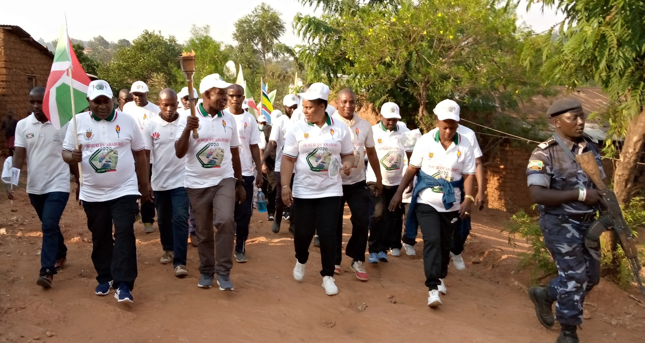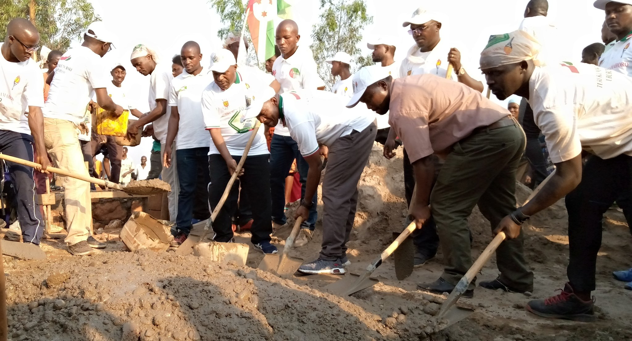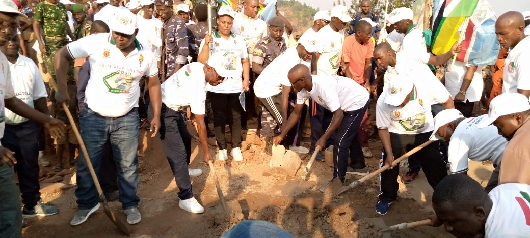 CIBITOKE ( Commune MURWI ), 18/09/2020 – M. BIZOZA Carême ( OPC1 , Colonel ), Gouverneur de CIBITOKE, accompagné par M. BUTORE Joseph, ancien Vice Président du BURUNDI, avec toute l’équipe du FLAMBEAU DE LA PAIX 2020, étaient aux TRAVAUX DE DEVELOPPEMENT COMMUNAUTAIRE (TDC). Consistant à paver des salles de classe de l’ Ecole Fondamentale ( ECOFO ) de BUCUZI.