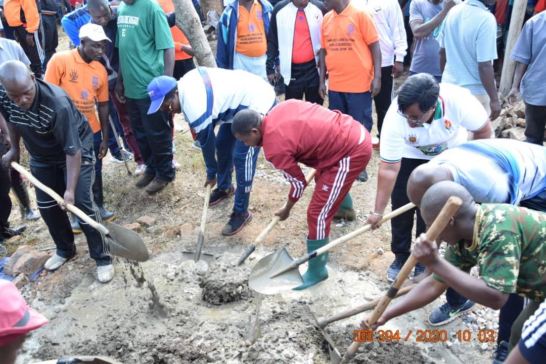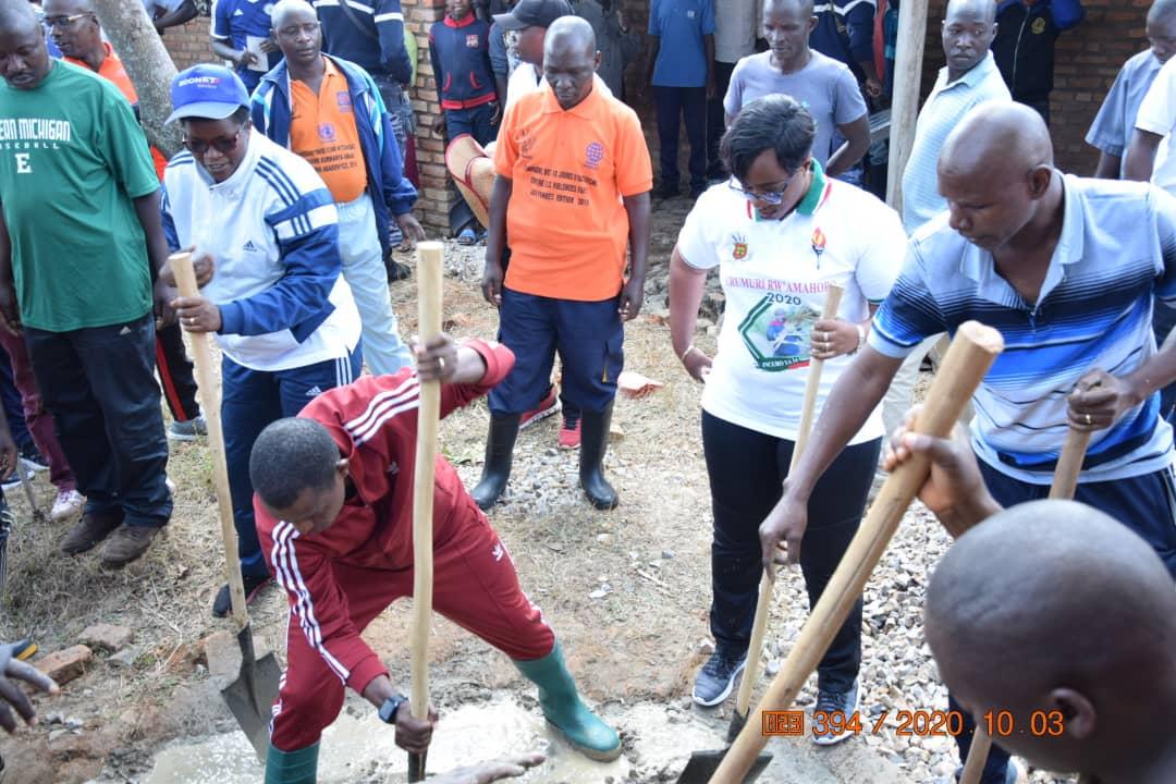 KARUSI ( Commune SHOMBO ), 3/10/2020 – Accueilli et accompagné par Mme MBARUSHIMANA Calinie, gouverneure de KARUSI, Hon. SINZOHAGERA Emmanuel, Président du SENAT DU BURUNDI, était aux TRAVAUX DE DÉVELOPPEMENT COMMUNAUTAIRE (TDC). Associé aux citoyens de la localité. Consistant à paver les salles de classe de l’Ecole Fondamentale (ECOFO) de NYABIBUYE.
