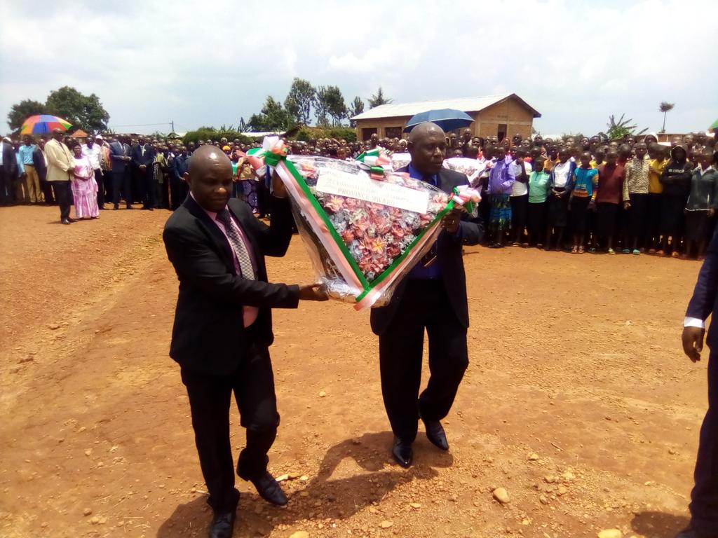 MWARO ( Commune BISORO ), 13/10/2020 – Reçu par M. NTANGAMAJERI Diomède, Administrateur de la commune BISORO, M. GASANZWE Gaspard ( Colonel ), Gouverneur de MWARO, était à la cérémonie. Organisée en mémoire du MUGANWA Feu RWAGASORE Louis, Héros national. Assassiné il y a 59 ans. Étaient présents, à la messe et au dépôt des gerbes de fleurs, toutes les hautes personnalités de la localité.