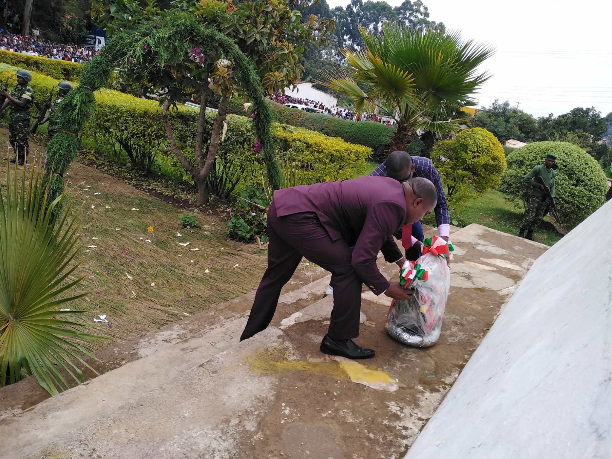 KAYANZA ( Commune KAYANZA ) , 13/10/2020 – M. CISHAHAYO Rémy (COL), Gouverneur de la Province KAYANZA, était à la commémoration du 59 ème anniversaire de l’assassinat du héros de l’indépendance du Burundi : MUGANWA Feu RWAGASORE Louis, Héros national. Étaient présents au dépôt des gerbes de fleurs au monument de l’unité nationale, de très nombreux citoyens autour des hautes personnalités de KAYANZA.