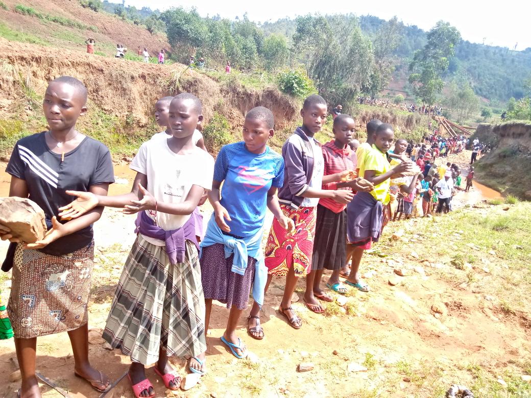 MURAMVYA ( Commune BUKEYE ), 24/10/2020 – M. NDIKUMASABO Euphrem, Administrateur de la Commune BUKEYE, était sur le terrain de l’action. Associé aux citoyens des collines NYARUCAMO, BUHORWA, et MUSUMBA. Occupés aux TRAVAUX DE DEVELOPPEMENT COMMUNAUTAIRE (TDC). Consistant à collecter des moellons, pour les uns. Menés, en file indienne, au chantier près du pont reliant BUKEYE et MBUYE. Où d’autres citoyens s’activaient à le réhabiliter. Ce pont permet de traverser au dessus de la rivière COGO.