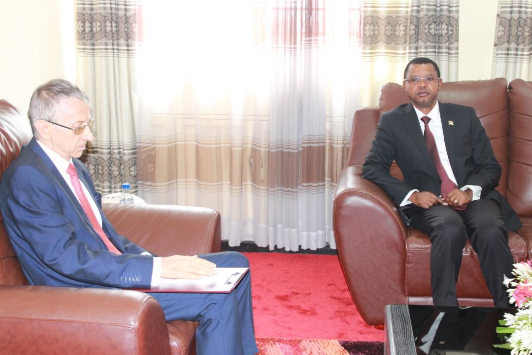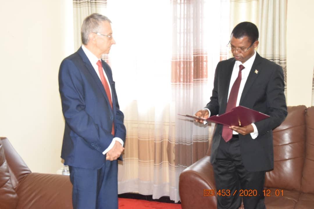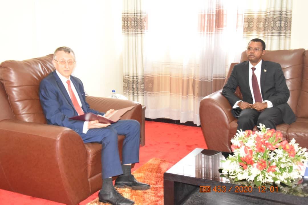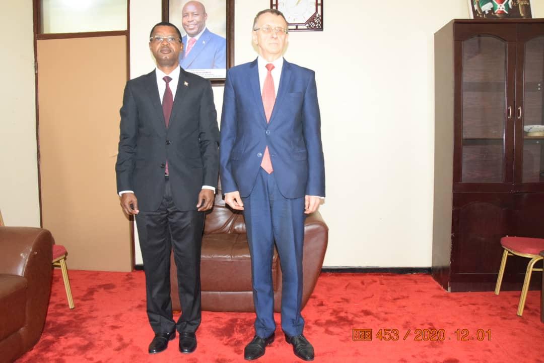 GITEGA, 1/12/2020 – L’Hon. SINZOHAGERA Emmanuel, Président du SENAT, recevait en audience S.E. Valery A. MIKHAYLOV, Ambassadeur de RUSSIE au BURUNDI. Portant un message de félicitations au Président du SENAT du BURUNDI pour son élection récent à la Chambre haute du Parlement Burundais. Échangeant sur le renforcement des relations de coopération RUSSIE-BURUNDI. Notamment entre la DOUMA ( Parlement RUSSE ) et le Sénat du BURUNDI.