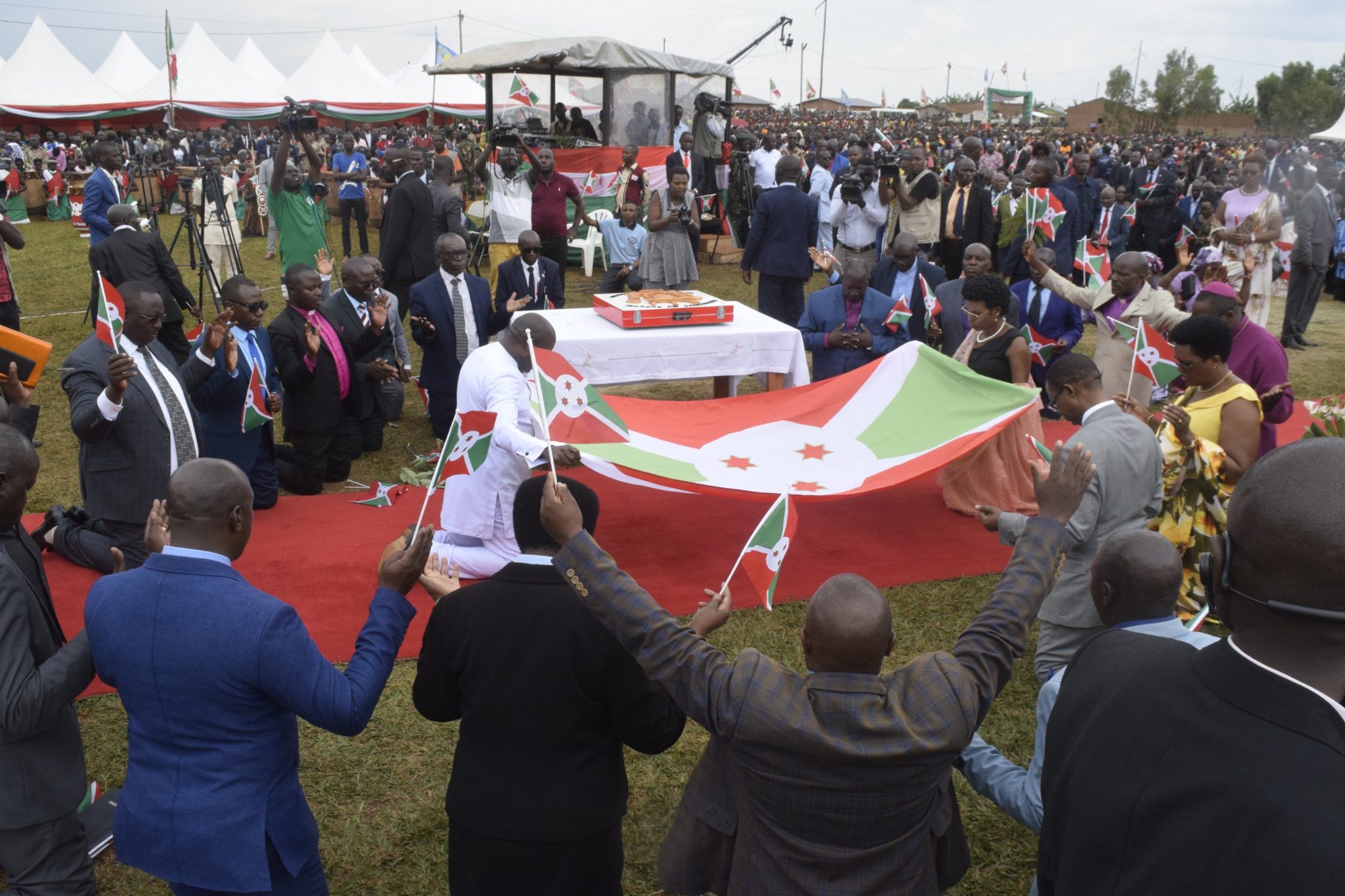 GITEGA ( Stade de MUTAHO ), 31/12/2020 – Dans la Tradition des BARUNDI, cette période était l’équivalent de LA FIN DE L’UMUGANURO [1] … La famille présidentielle, comme autrefois aurait fait la famille du MWAMI DES BARUNDI, a clôturé la prière d’action de grâce. Marquée par la prière pour la Nation faite par S.E NDAYISHIMIYE Evariste ( Général Major ),entouré de plusieurs Serviteurs d’« IMANA »[2]. Réalisée, comme une tradition , initiée par S.E. Feu NKURUNZIZA Pierre, ancien Chef d’ETAT du BURUNDI, afin de mettre le BURUNDI – INGOMA Y’UBURUNDI – sous la protection et la bénédiction du tout puissant –IMANA– au cours l’année 2021. La louange à IMANA, en fin d’UMUGANURO, destinée au tout puissant est de donner au BURUNDI et aux BARUNDI une très bonne PRODUCTION pour 2021. Permettant à tous les BARUNDI ou tous LES – IMIRYANGO – BARUNDI, en bonne santé, grâce à une bonne POLITIQUE DE REDISTRIBUTION JUSTE, de bien BOIRE et de bien MANGER.