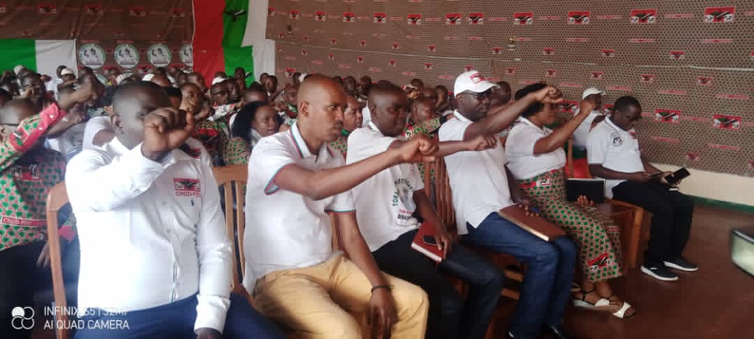 CANKUZO, 22/02/2021 – L’Hon. NDIKURIYO Reverien, nouveau Secrétaire Général du parti CNDD-FDD, 1ère formation politique du BURUNDI, était en visite à CANKUZO. Rencontrer tous les BAGUMYABANGA ( nom des militants du CNDD-FDD ) de la province CANKUZO. CANKUZO, étant la 15ème étape de sa tournée dans toutes les 18 provinces du pays. Avec de nombreux badauds dans les rues de MWARO, accueilli de très manière par les BAGUMYABANGA. Rencontrant, parmi les BAGUMYABANGA, les cadres et leaders communaux et collinaires de CANKUZO.