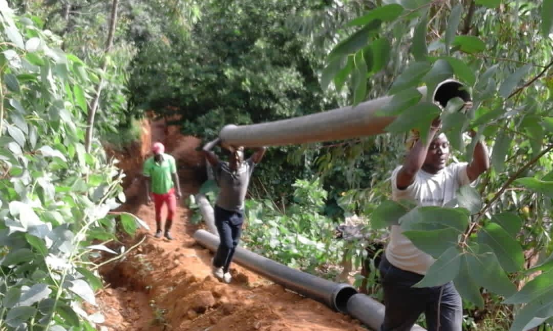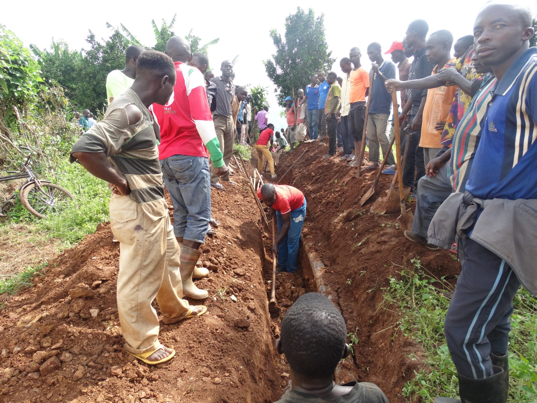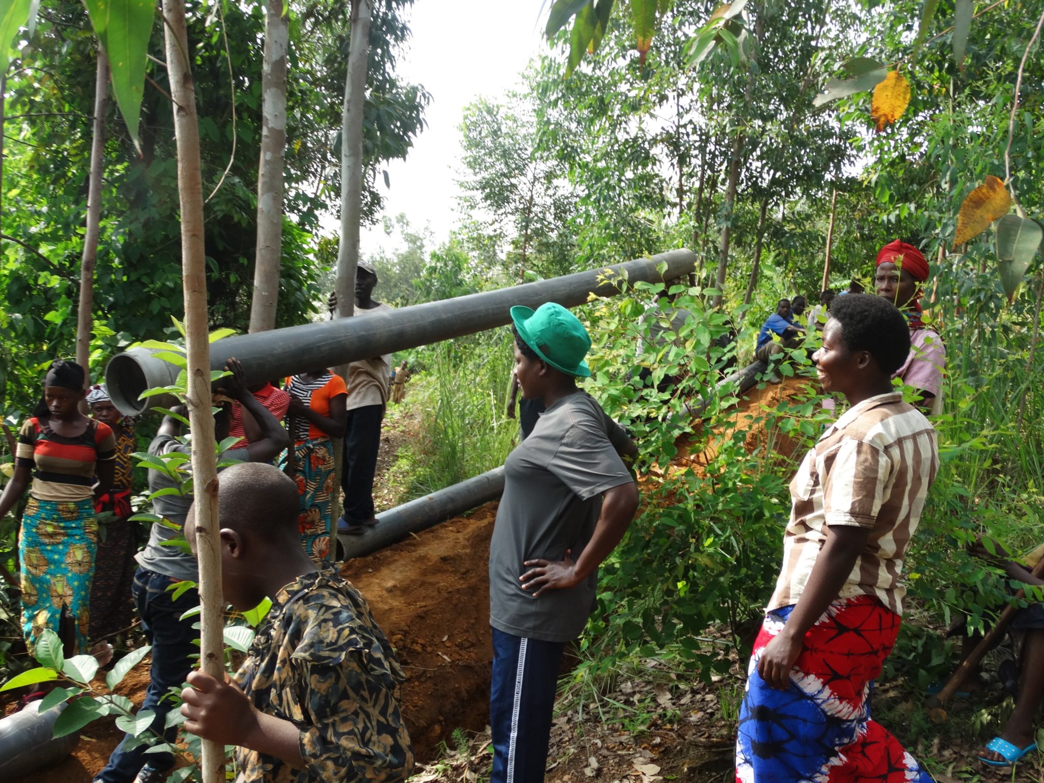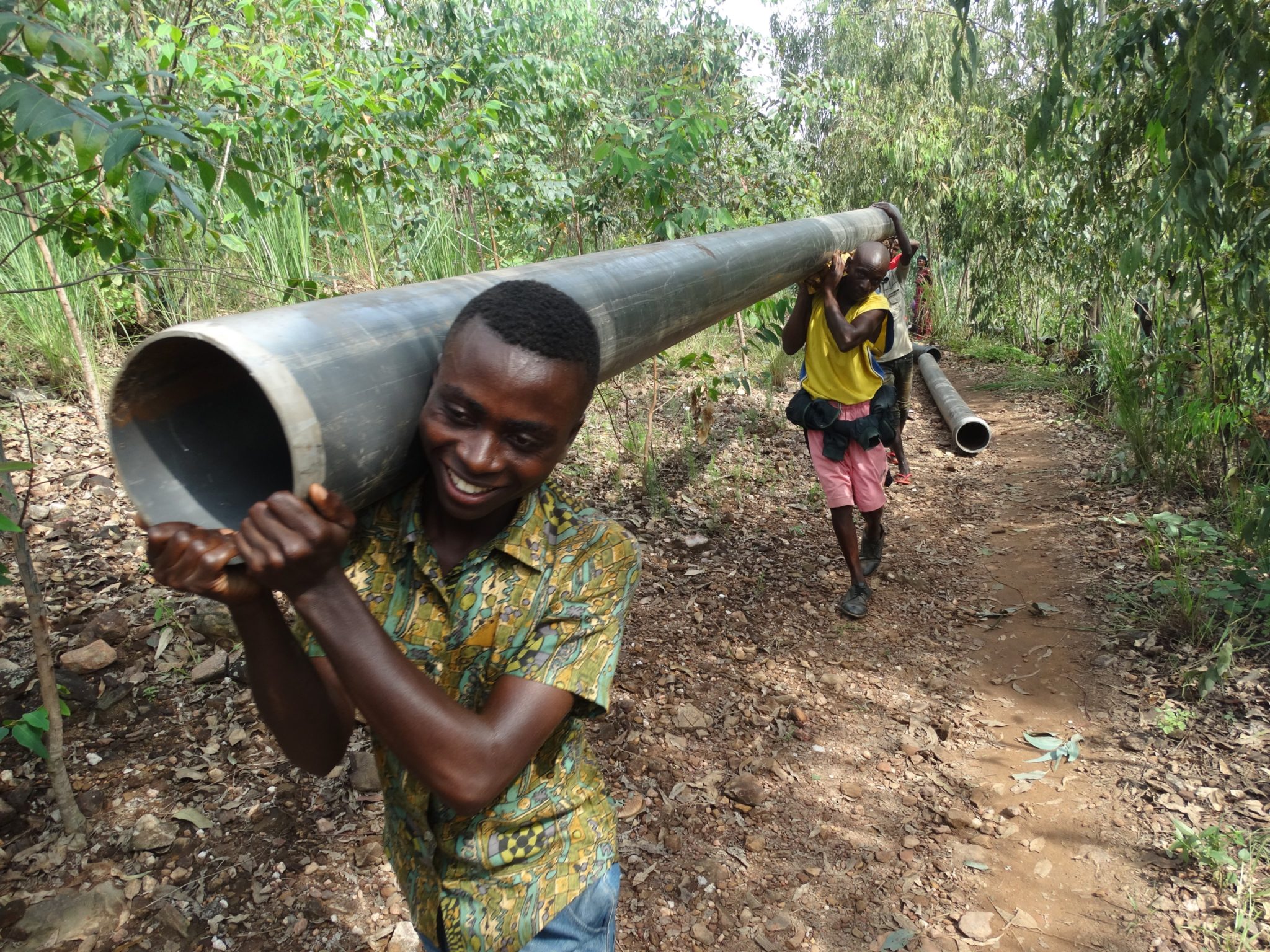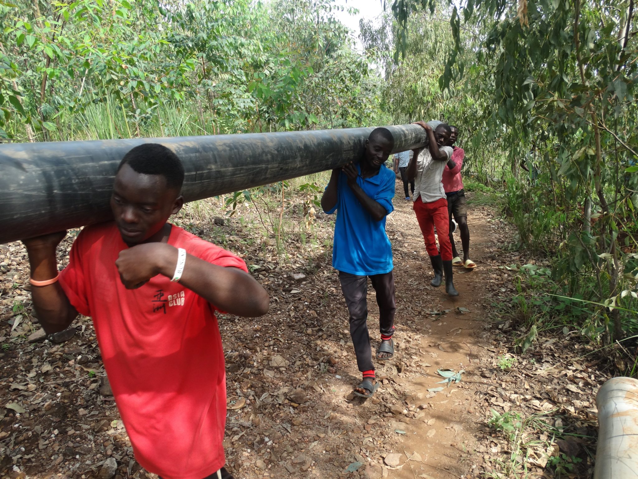 Les citoyens locaux, ensemble avec des ouvriers de LA REGIDESO, ont porté, puis posé ces lourds tuyaux en terre.