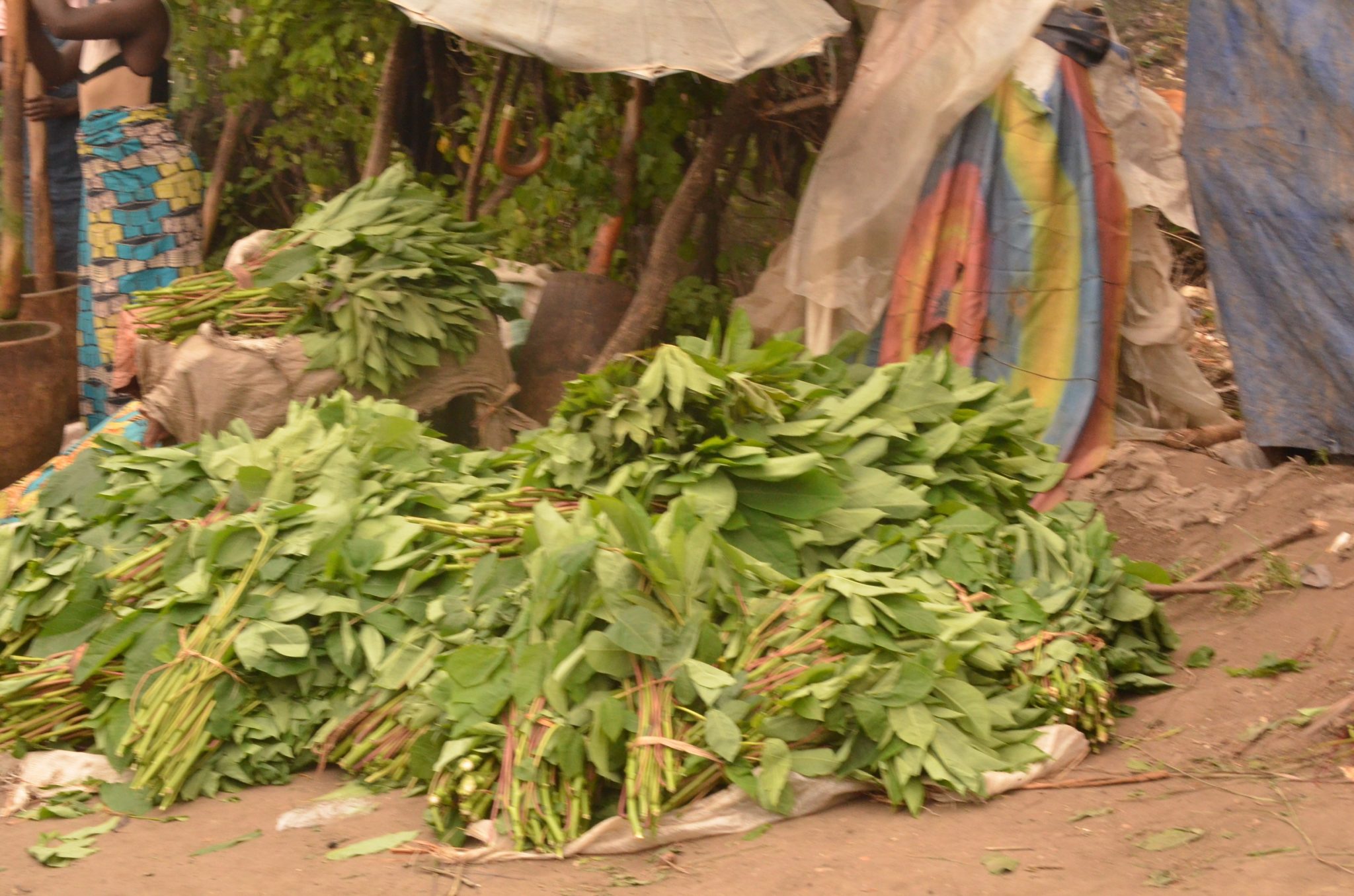 BUJUMBURA ( Commune NTAHANGWA ), 2/03/2021 – Mme IRADUKUNDA Christa est vendeuse de feuille de manioc pillé – ISOMBE -, au marché de KAMENGE.