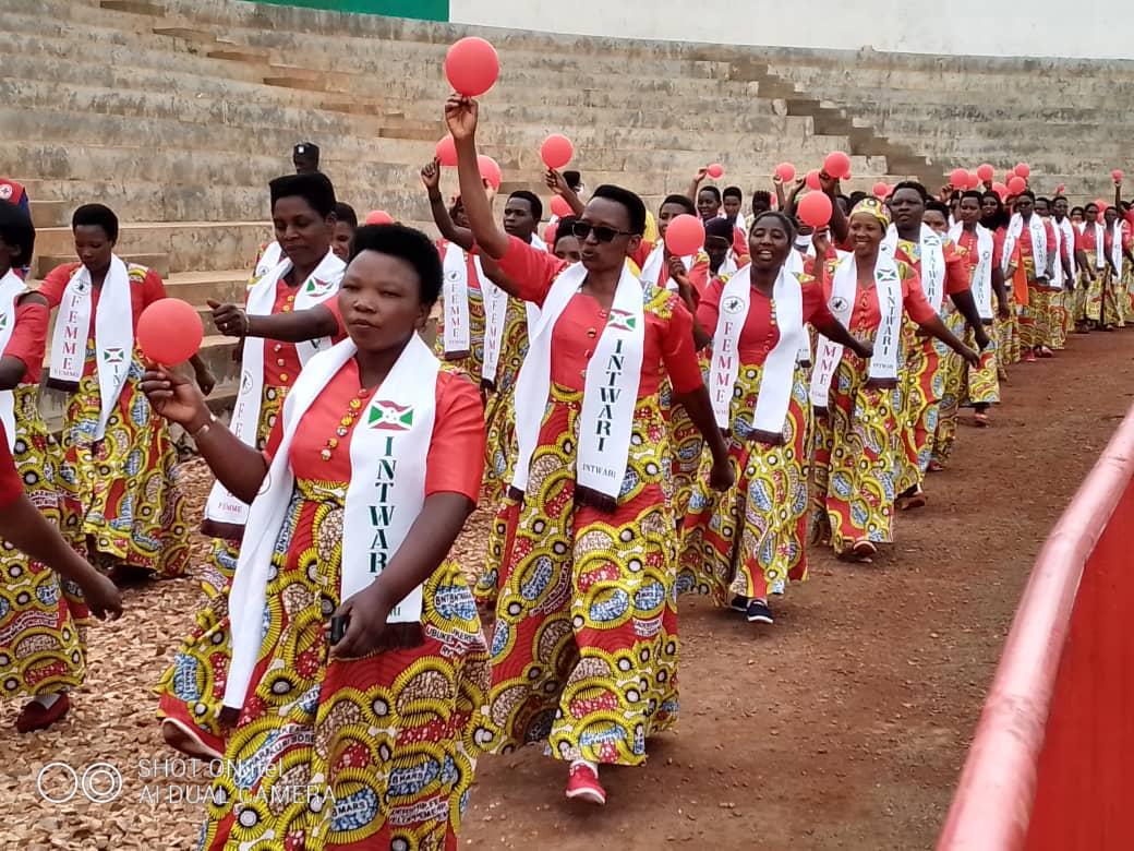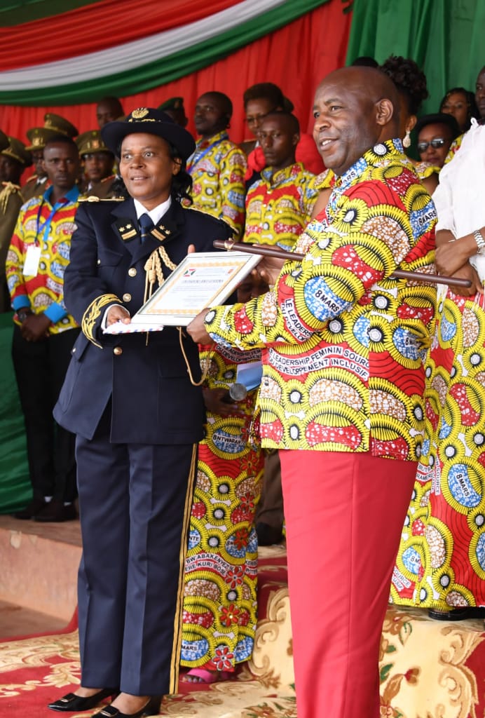 A cette occasion, les femmes militaires et policières, ainsi que les femmes de toutes les corporations ont défilé . S.E. NDAYISHIMIYE Evariste, en a profité pour certifier un homme et 17 FEMMES dont son épouse, pour leur bravoure et leur leadership dans différents domaines de la vie BURUNDAISE.