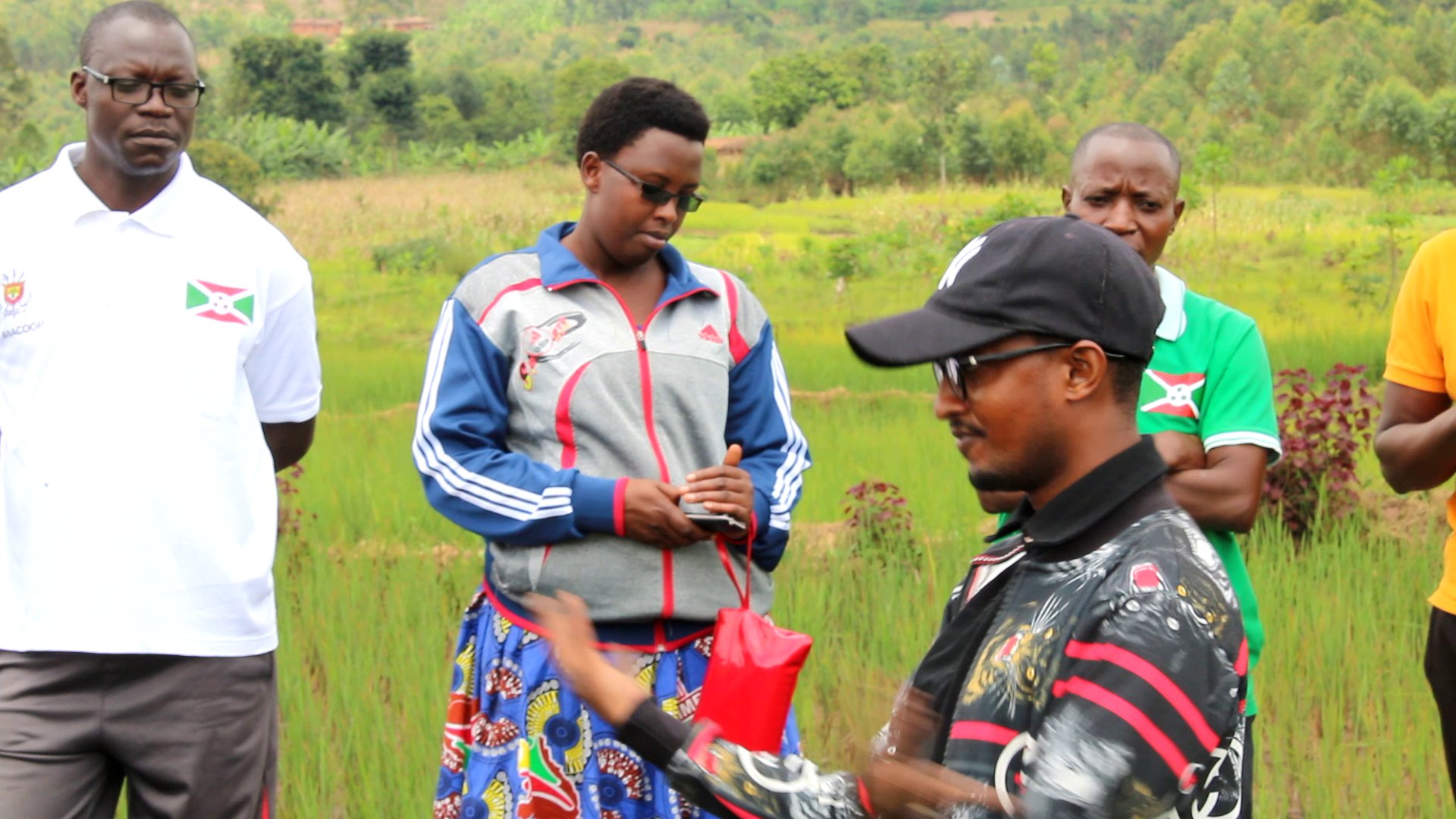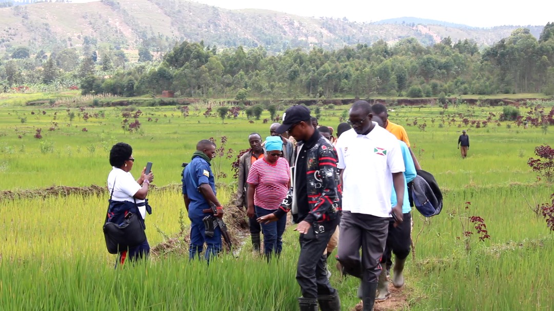 GITEGA ( Commune MAKEBUKO ), 17/03/2021. Reçu par Mme KANYAMUNEZA Yvette, Administrateure communale de MAKEBUKO. Accompagné de M. NDAYIKEJE Evrard, Directeur Général du Développement Communautaire au Ministère burundais de l’Intérieur, du Développement communautaire et de la Sécurité publique. M. MANIRAMBONA Venant , Gouverneur de la province GITEGA, organisait une descente aux champs rizicoles des marais de NYAGIHUNDO, MAVUVU et KIBUYE. Appelant les riziculteurs à accélérer les travaux de sarclage en cours en vue de pouvoir bénéficier des engrais chimiques qui seront distribués vendredi 26 mars 2021 par la Coopérative d’ Investissement Agro – Pastoral (CIAP).
