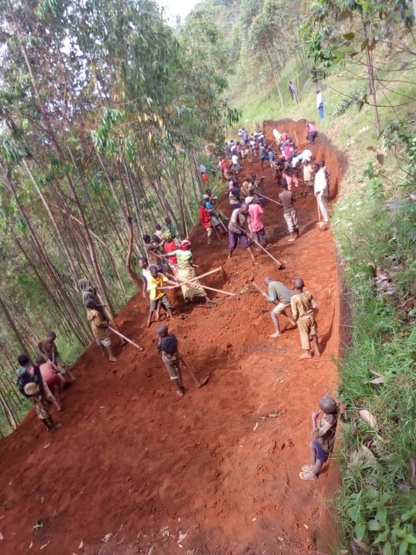 BUJUMBURA ( Commune NYABIRABA ), 13/03/2021 – M. SIMBANANIYE Ferdinand, Administrateur communale de NYABIRABA, organisait des TRAVAUX DE DEVELOPPEMENT COMMUNAUTAIRE [ TDC – http://burundi-agnews.org/TDC ] aux côtés des citoyens de NYABIRABA. Portant chacun les outils appropriés pour travailler. Consistant à tracer une route entre les collines MUGENDO, MUSENYI et KINAMA, facilitant l’accès et désenclavant cette localité précise.