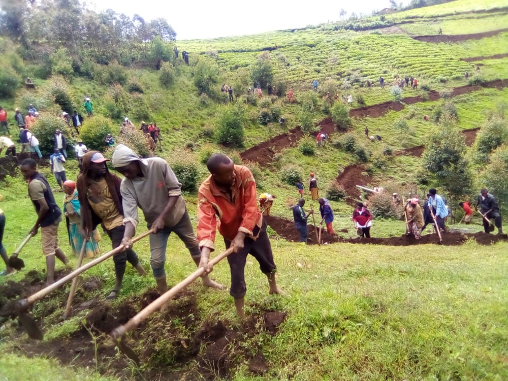 MWARO ( Commune RUSAKA ), 1/04/2021 – Accompagnée de M. NDAYISHIMIYE Jérôme, Conseiller chargé du Développement au Bureau du Gouverneur de MWARO. Mme KANEZA Carine, Administrateure communale de RUSAKA, organisait une visite en colline NAMANDE à 2.377 m d’altitude. Participant aux côtés des citoyens aux TRAVAUX DE DEVELOPPEMENT COMMUNAUTAIRE [ TDC – http://burundi-agnews.org/TDC ]. Consistant à aménager des courbes de niveau sur les pentes très accentuées de cette localité. Et évaluant ensemble les réalisations des coopératives SANGWE et DUFATENEMUNDA.