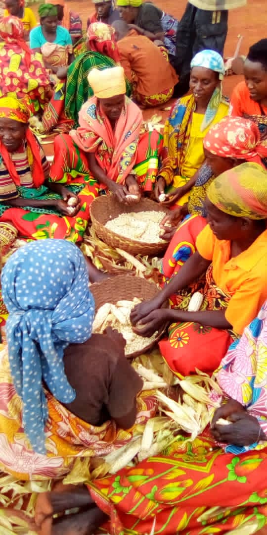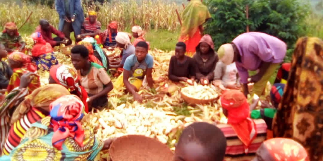 KAYANZA ( Commune BUTANGANZWA ), 30/03/2021 – Dans une ambiance agréable, les membres de la coopérative SANGWE en colline GIKUNGERE, rassemblées, égrainaient les maïs de leur très bonne récolte.