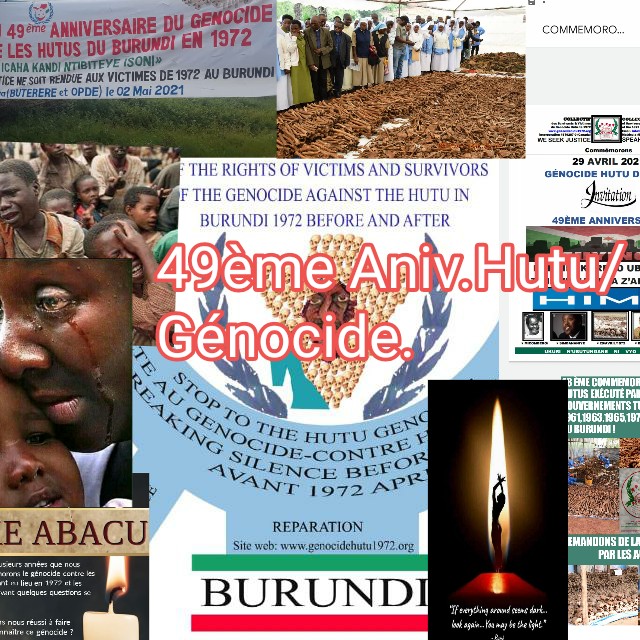 Hier, mercredi 28 Avril 2021, pour la première fois, L’ETAT du BURUNDI, par l’intermédiaire du SENAT DU BURUNDI, après une minute de silence, a reconnu que LE GOUVERNEMENT MICOMBERO AVAIT PLANIFIE « l’extermination d’un nombre important de ses citoyens » [ https://bdiagnews.com/genocide/genocide-contre-les-hutu-du-burundi-en-1972-senat-le-gouvernement-micombero-a-planifie-cette-extermination/ ].