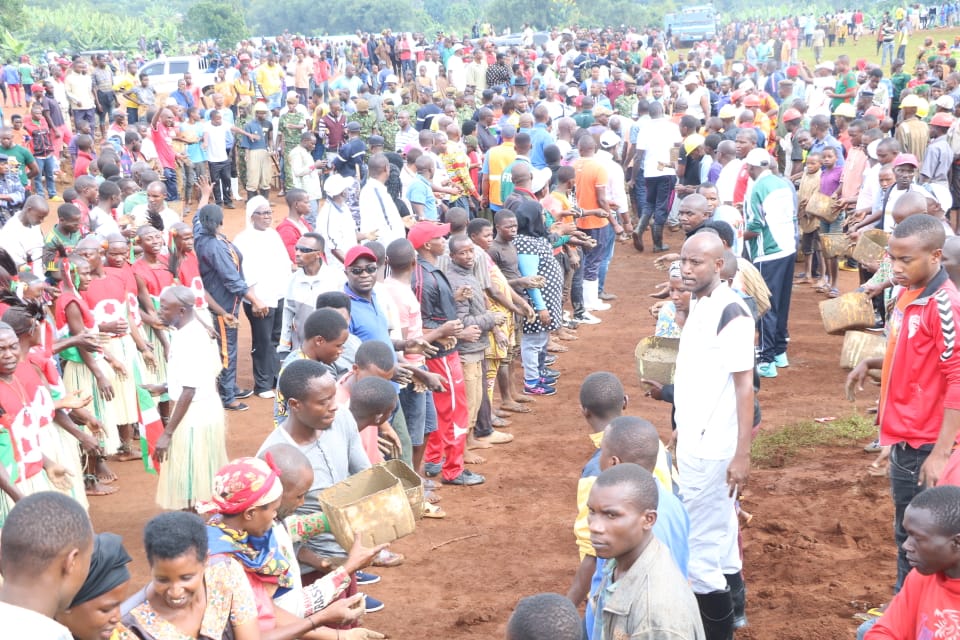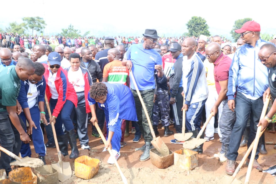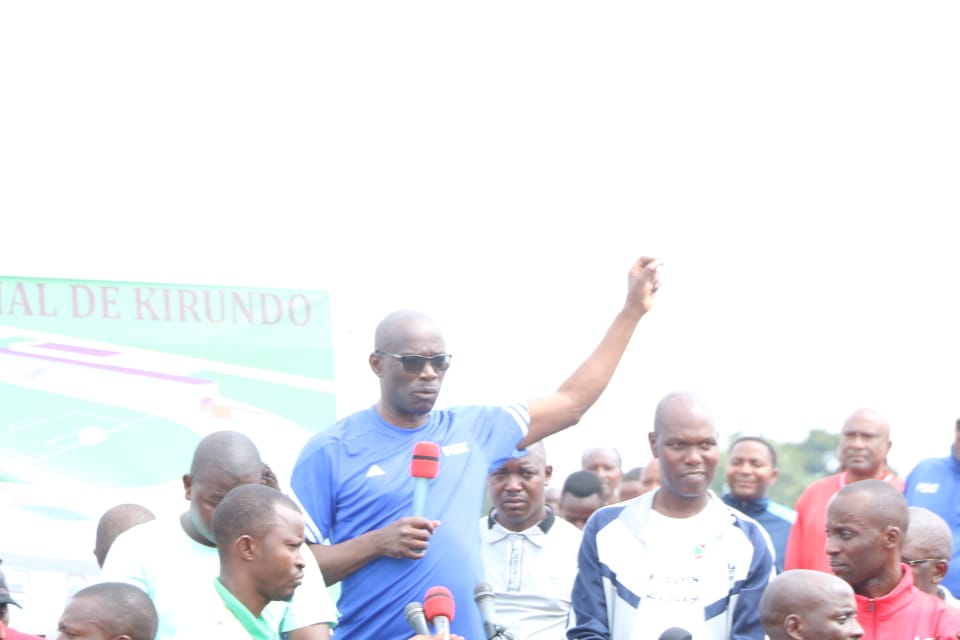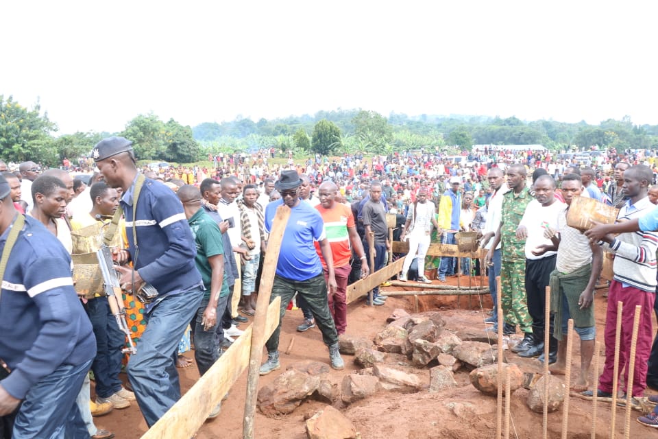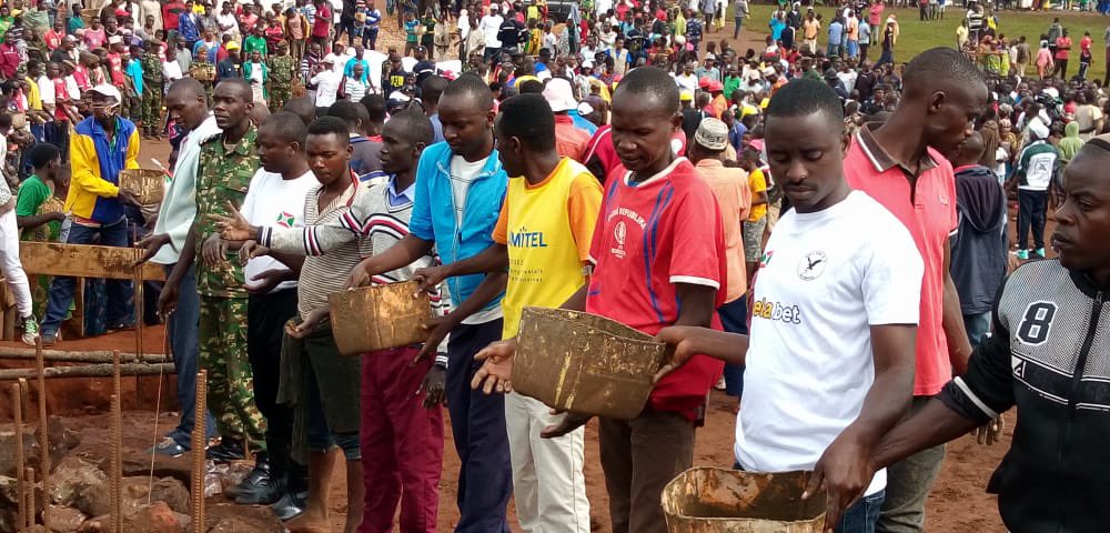KIRUNDO ( Commune BUSONI ), 8/05/2021 – L’Hon. NDIKURIYO Réverien, Secretaire Général du parti CNDD-FDD, participait, avec les citoyens de KIRUNDO mobilisés, dont de nombreux BAGUMYABANGA ( nom des militants du CNDD-FDD ), sur la colline NYARUNAZI, aux TRAVAUX DE DEVELOPPEMENT COMMUNAUTAIRE [ TDC – http://bdiagnews.com/TDC ],consistant à construire le stade moderne de KIRUNDO. Certains, préparant le ciment. D’autres, en file indienne le portant sur le chantier. Là où ,les ouvriers spécialisés battissent le STADE.