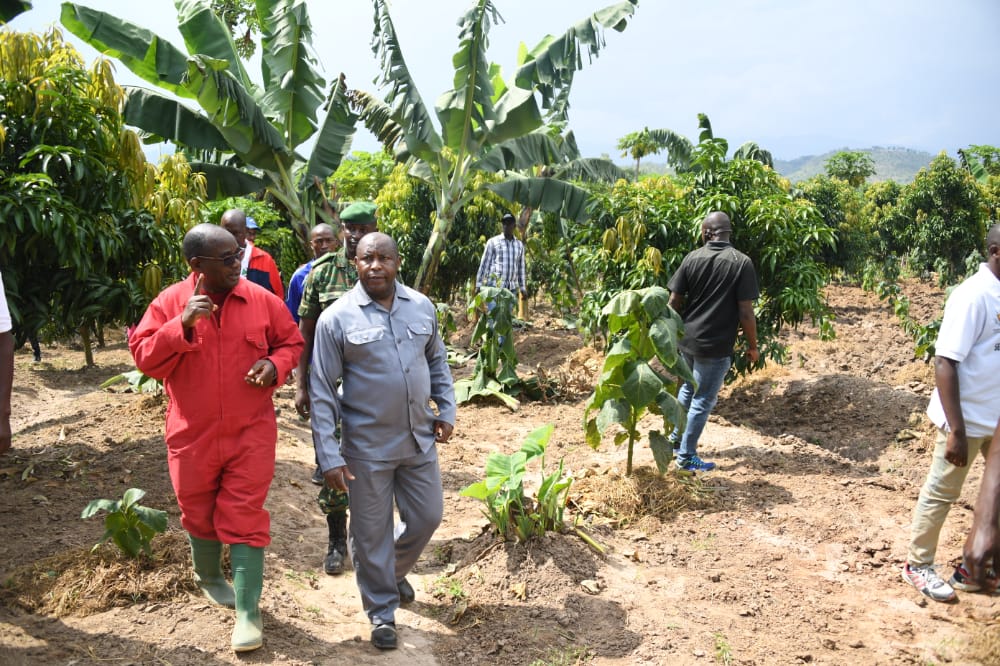 BUBANZA ( Commune MPANDA ), 3/06/2021 – S.E. NDAYISHIMIYE Evariste ( Général Major ), Président du BURUNDI, visitait une exploitation agropastorale, comprenant un champ d’arbres fruitiers et un élevage, appartenant à des natifs de MPANDA, rassemblés en coopérative.