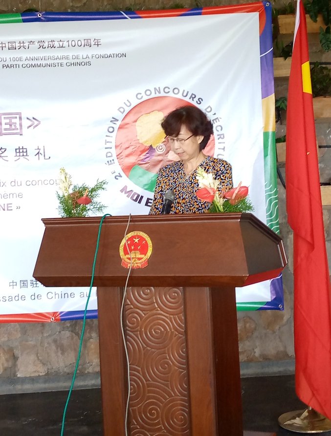BUJUMBURA, 19/06/2021 – S.E. Mme ZHAO JIANGPING, Ambassadeure de CHINE au BURUNDI, participait à la cérémonie de remise des prix du concours d’écriture 2ème édition, avec comme thématique : « Moi et la Chine », cadrant avec la célébration du 100ème anniversaire de la fondation du Parti Communiste Chinois.