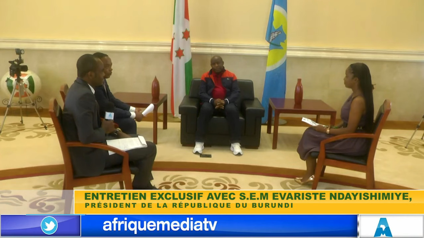 Voici l’interview d’ AFRIQUE MEDIA dans son entièreté et l’excellente prestation de S.E. NDAYISHIMIYE, Chef d’Etat du BURUNDI : [ https://www.youtube.com/watch?v=3IwBtcgi_W4 ].