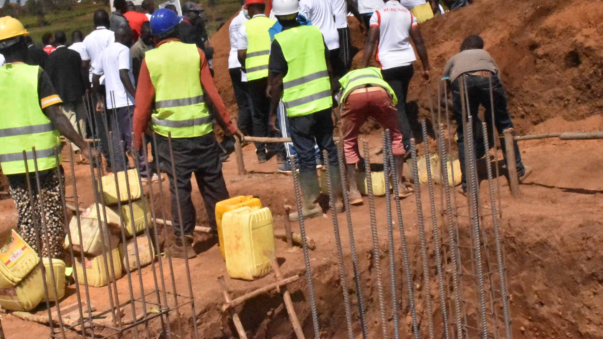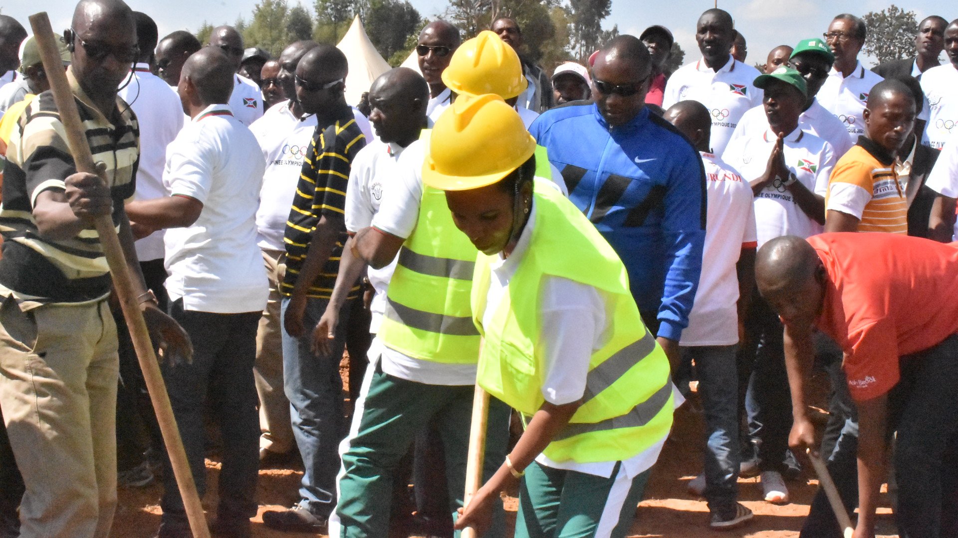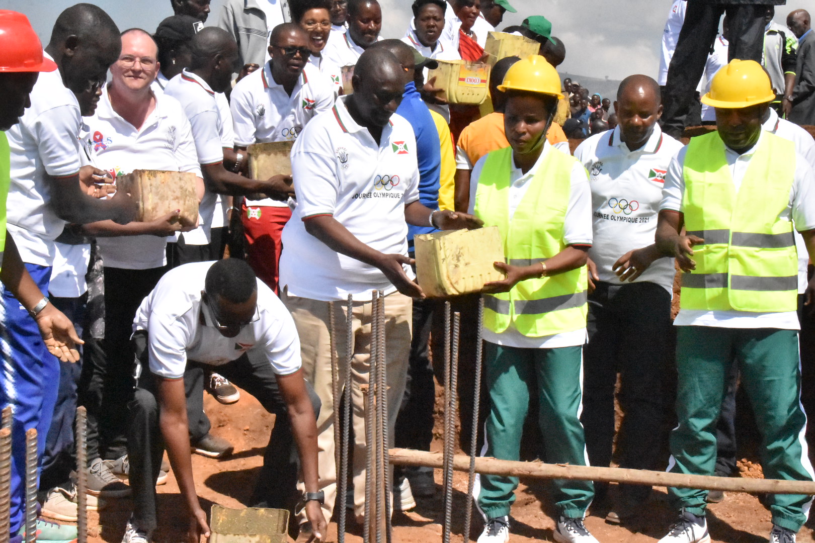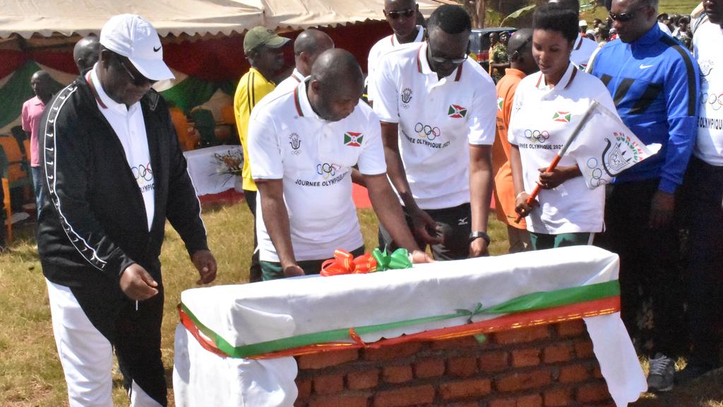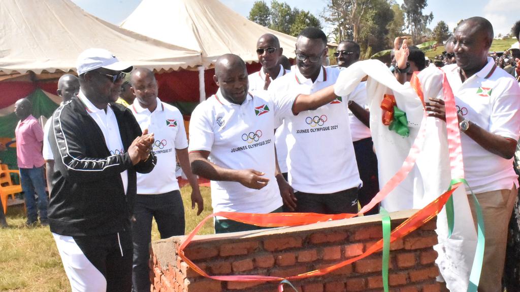 BURURI ( Commune MUGAMBA ), 26/06/2021 – Reçu par M. NTAHOMBAYE Venuste, Administrateur communal de MUGAMBA, et M. BANDENZAMASO Léonidas ( Colonel ), Gouverneur de la province BURURI. A l’occasion de la célébration de la journée nationale olympique, S.E. NDAYISHIMIYE Evariste ( Général Major), Président du BURUNDI, accompagné de son épouse S.E. NDAYUBAHA Angéline , Première Dame du BURUNDI, participait aux TRAVAUX DE DEVELOPPEMENT COMMUNAUTAIRE [ TDC – http://bdiagnews.com/TDC ]. Consistant à construire LE CENTRE SPORTIF à MUYANGE, après avoir posé de la première pierre de cette infrastructure, et offert 300 sacs de ciment comme contribution.
