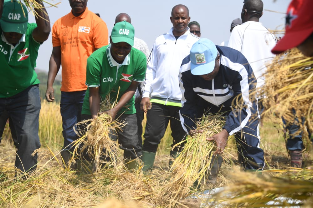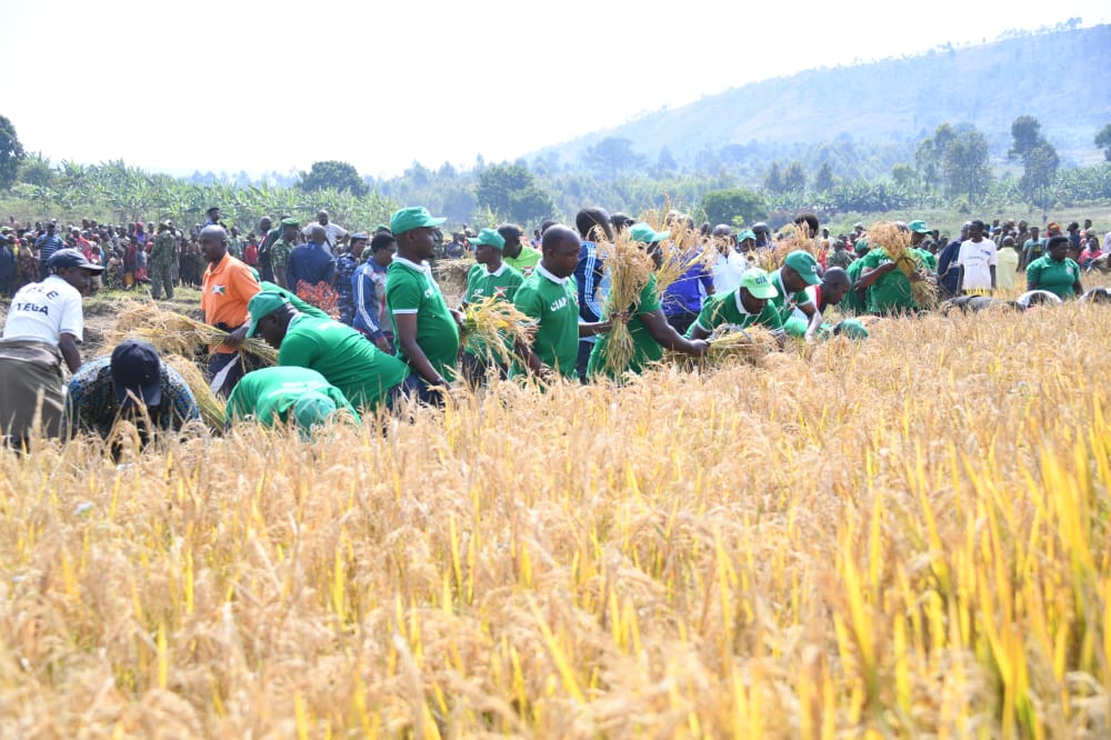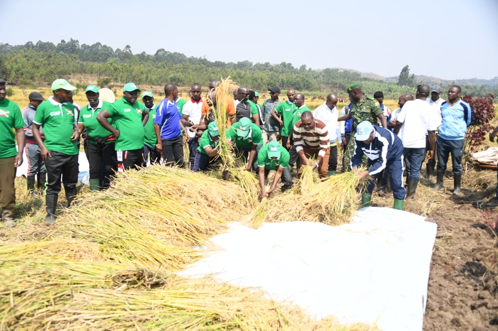 GITEGA ( Commune MAKEBUKO), 8/07/2021 – S.E. NDAYISHIMIYE Evariste ( Général Major ), Président du BURUNDI, participait, aux côtés des agriculteurs locaux, membres de LA COOPERATIVE DUKOREREHAMWE , aux TRAVAUX DE DEVELOPPEMENT COMMUNAUTAIRE [ TDC – http://bdiagnews.com/TDC ]. Consistant à récolter du riz dans la vallée de NYAGIHUNDO, un champ s’étendant sur 37 Hectares.