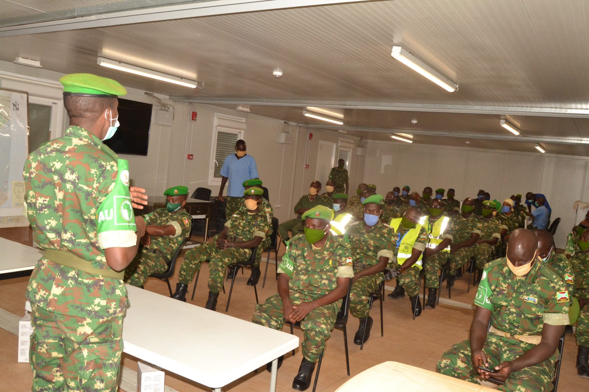 SOMALIE, 16/07/2021 – Des militaires de la Force de Défense Nationale du Burundi (FDNB), en mission à L’AMISOM [1], ont été vaccinés, volontairement, contre LA COVID-19, par L’UNSOS [2]. Cadrant avec la prévention contre cette pandémie. Destinée aux personnels de L’AMISOM.