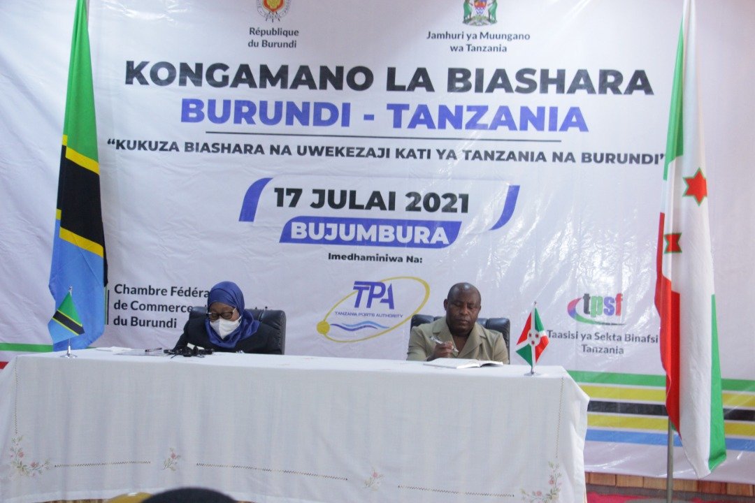 DIPLOMATIE, SOCIO-ECONOMIQUE – BUJUMBURA, Samedi 17 juillet 2021 – S.E. SULUMU Samia Hassan, Présidente de TANZANIE, et S.E. NDAYISHIMIYE Evariste ( Général Major ), Président du BURUNDI, participaient à UN FORUM DES AFFAIRES ENTRE LES OPERATEURS ECONOMIQUES BARUNDI ET TANZANIENS. Organisé par la Chambre Fédérale de Commerce et d’Industrie du Burundi ( CFCIB ) et la Tanzania Private Sector Foundation (TPSF).