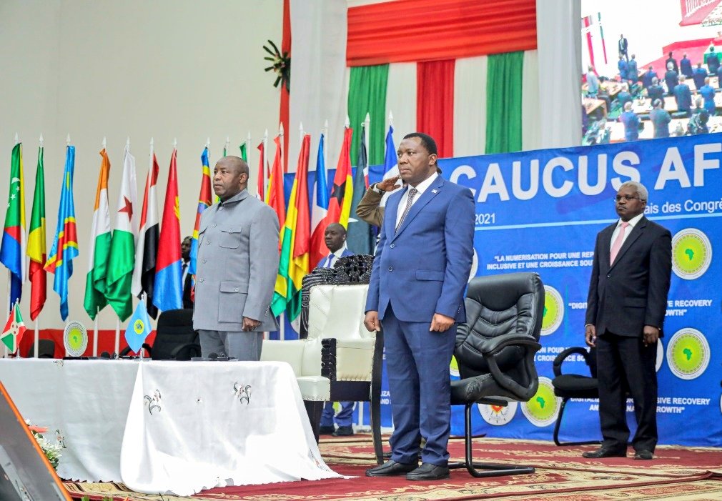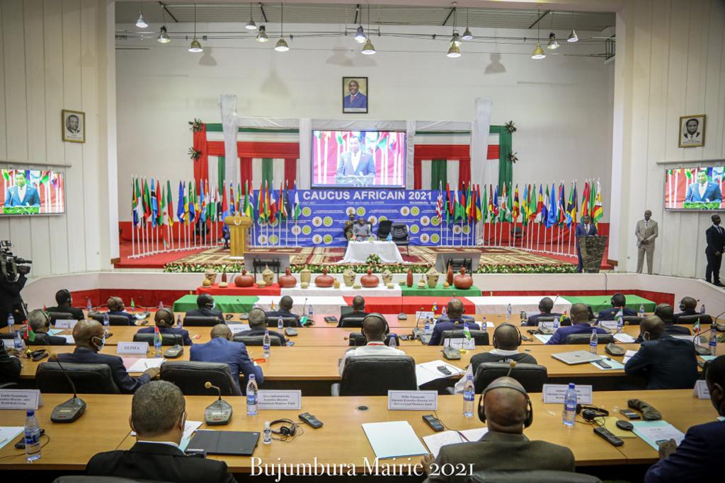 BUJUMBURA ( HEMICYCLE DE KIGOBE ), 4/08/2021 – S.E. NDAYISHIMIYE Evariste ( Général Major ), Président du BURUNDI, a lancé le début de la conférence internationale, relative aux travaux de la 58ème édition du CAUCUS AFRICAIN 2021. Rassemblant les Ministres-Gouverneurs Africains et les administrateurs des BANQUE MONDIALE et FONDS MONETAIRE INTERNATIONALE (FMI). Échangeant sur LE FINANCEMENT DES PLANIFICATIONS DES PAYS AFRICAINS par ces institutions DES BRETTON WOODS.