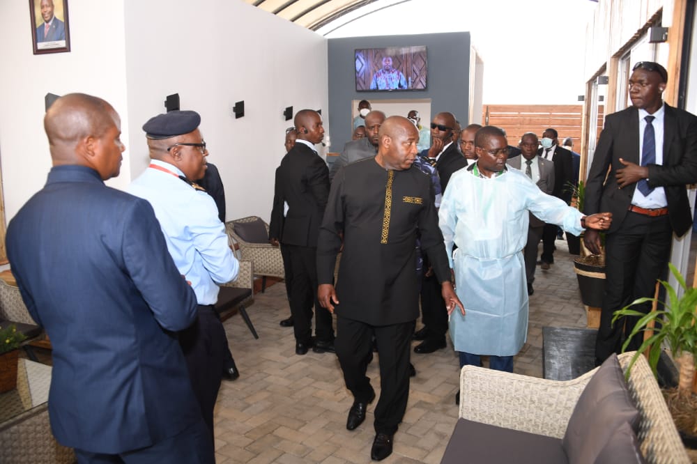 BUJUMBURA, 20/08/2021 – Organisée par le Comité National de la lutte contre la Covid-19. S.E. NDAYISHIMIYE Evariste ( Général Major ), Président du BURUNDI, participait à l’inauguration d’un centre de dépistage Covid-19 à l’Aéroport international NDADAYE Melchior de BUJUMBURA. Permettant de ralentir la propagation et faciliter la prise en charge des cas Covid-19 détectés à l’arrivée, par avion, au BURUNDI.