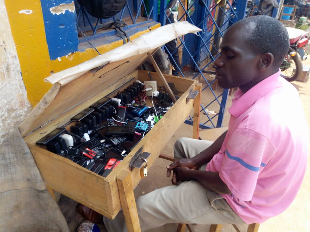 NGOZI, 24/08/2021 – M. MANIRAKIZA Samuel, technicien et commerçant, père de 6 enfants, utilisant 38 chargeurs, charge les télephones portables et des post-radio pour les citoyens de la localité, ne disposant pas d’électricité chez eux. Gagnant entre 5.000 BIF ( 2,5 USD ) à 8.000 BIF ( 4 USD ) par jour depuis 2 ans.