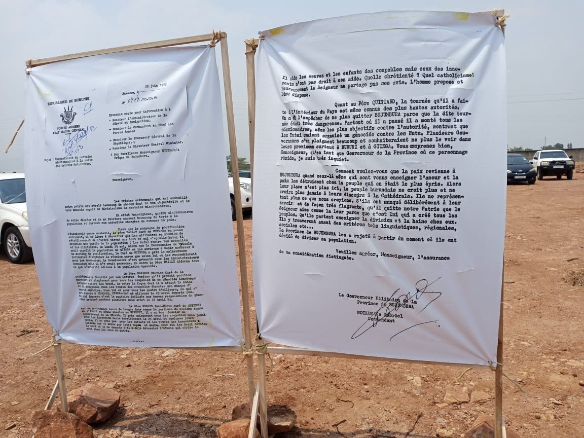 BUJUMBURA ( Commune NTAHANGWA ), 7/09/2021 – Reçu par M. NIYONZIMA Ernest, Administrateur communal de NTAHANGWA. En présence de l’Hon. NSHIMIRIMANA Cyriaque, Vice Président du SENAT DU BURUNDI. La Commission Vérité Réconciliation (CVR) du BURUNDI, représentée par son Président, le très respectable M. NDAYICARIYE Pierre Claver, a clôturé provisoirement le processus d’enquête et d’exhumation des fosses communes en MAIRIE DE BUJUMBURA et aux alentours immédiats. Organisant dans le quartier de BUTERERE une prière interconfessionnelle en mémoire du GENOCIDE CONTRE LES BAHUTU DU BURUNDI DE 1972. Affichant une liste publique de 962 citoyens BARUNDI, BAHUTU, identifiés par le pouvoir de l’époque, arrêtés pour être emprisonnés, puis exécutés en 1972. Affirmant que des fosses communes avaient été creusées par des machines à la station d’épuration des eaux usés de BUTERERE et aux environs.