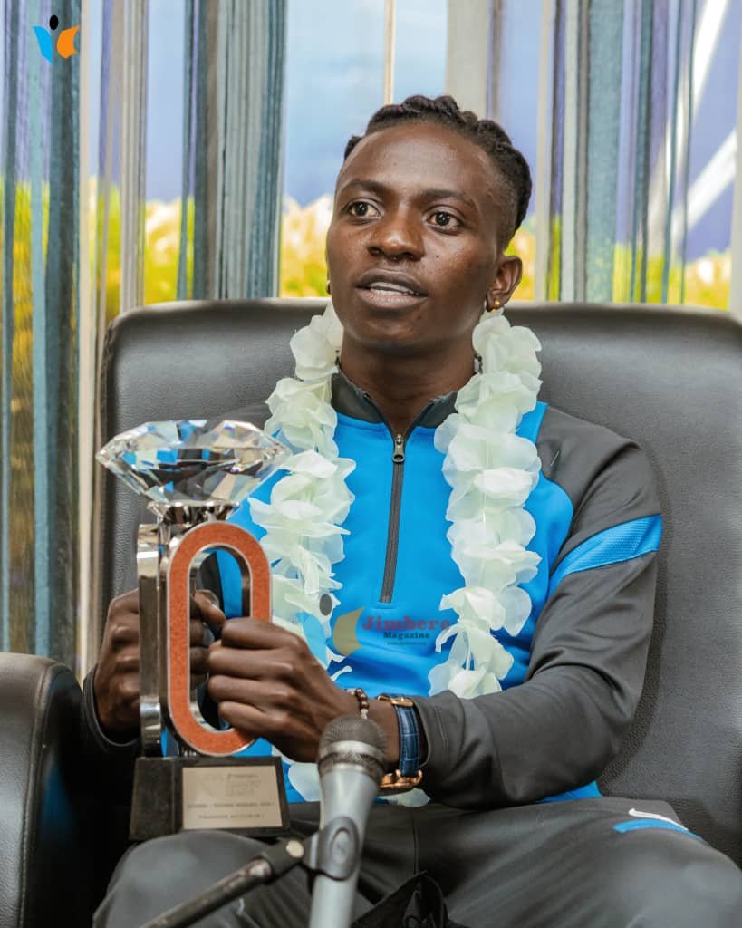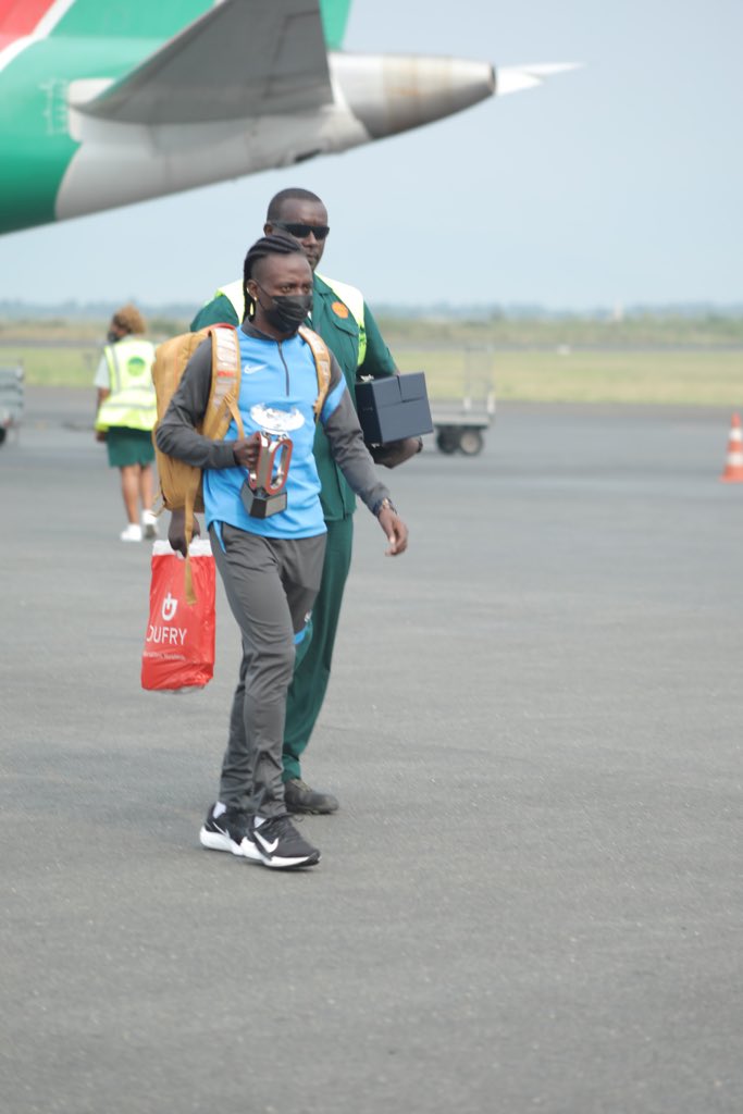 Notre championne NIYONSABA Francine disant un petit message sur le tarmac : « Je n’y serai jamais arrivée sans votre soutien. Votre motivation m’a poussée à y aller à fond, pour ne pas vous décevoir et porter haut les couleurs du pays« .
