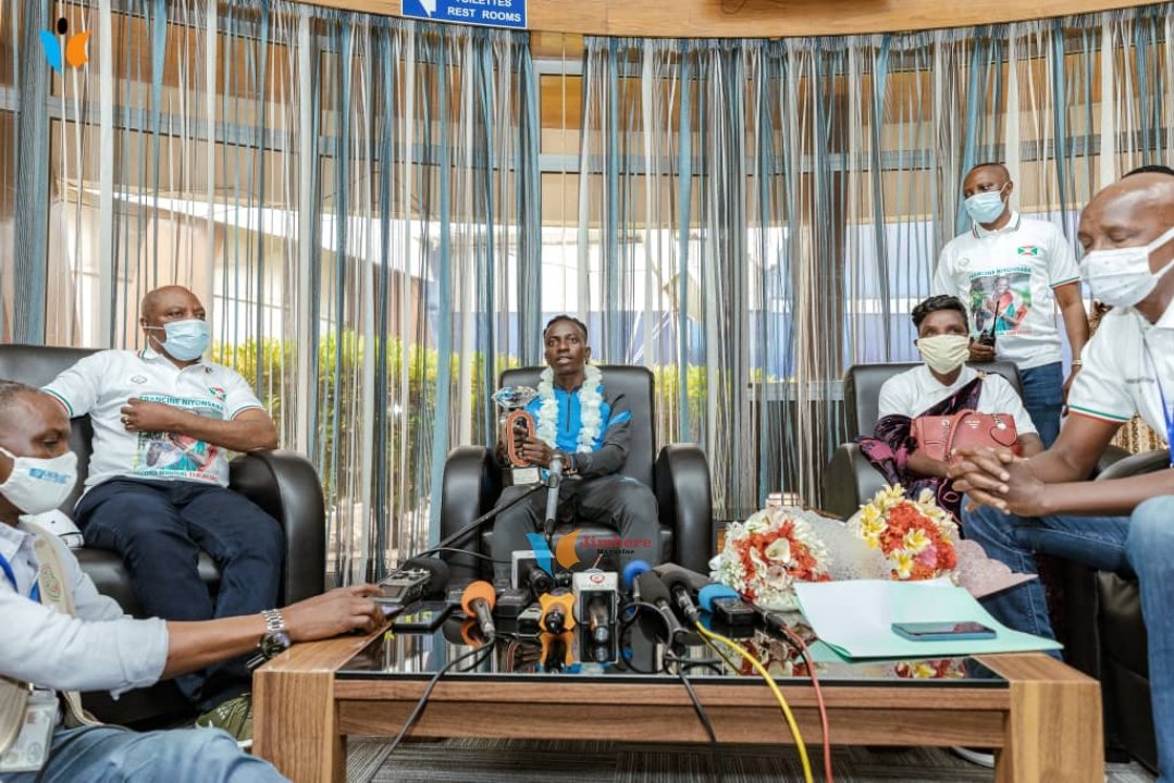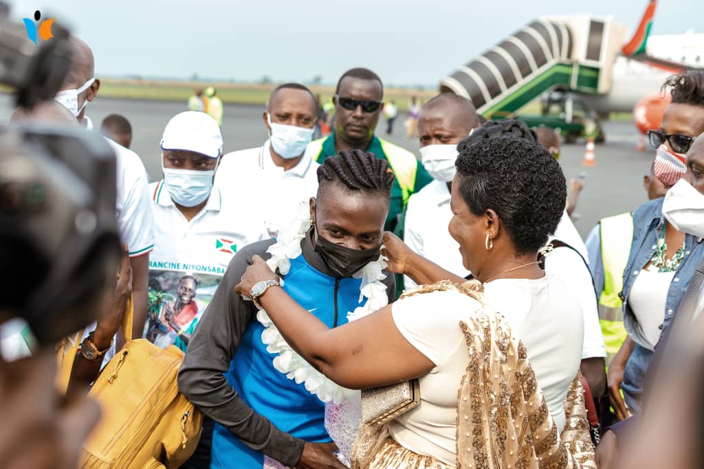 BUJUMBURA, 22/09/2021 – Reçue par M. HATUNGIMANA Jimmy ( Commissaire de Police / Officier de Police Chef Première Classe – OPC1 ), Maire de la ville de BUJUMBURA et de nombreux autres personnalités publiques. Notre NIYONSABA Francine, reine du 2.000 m Féminin, est rentrée au pays. A son arrivée à l’Aéroport NDADAYE Melchior, de nombreux BARUNDI s’étaient déplacés pour l’accueillir. Comprenant des tambourinaires, des associations diverses, suivis d’un cortège de plusieurs centaines de voitures.