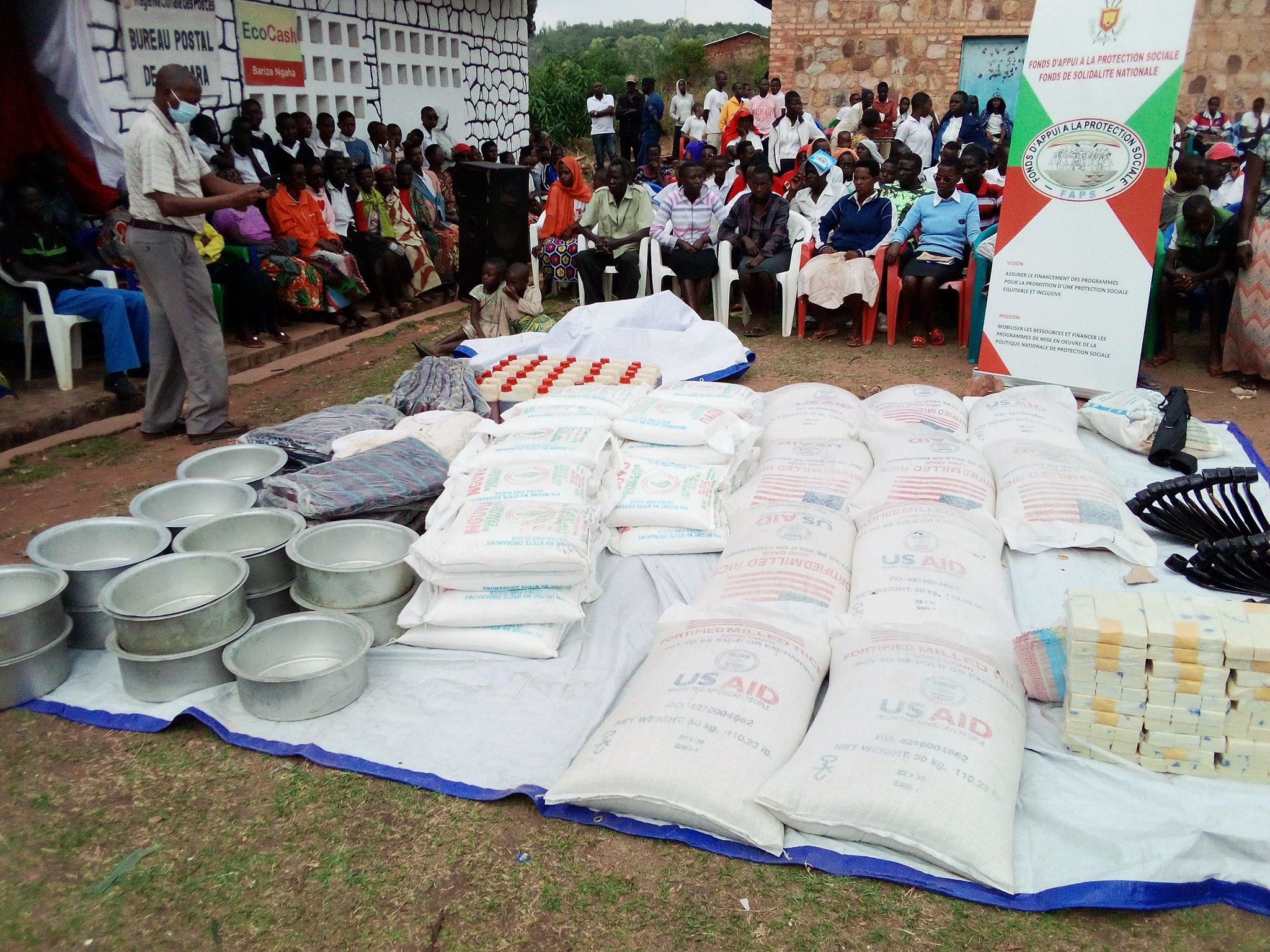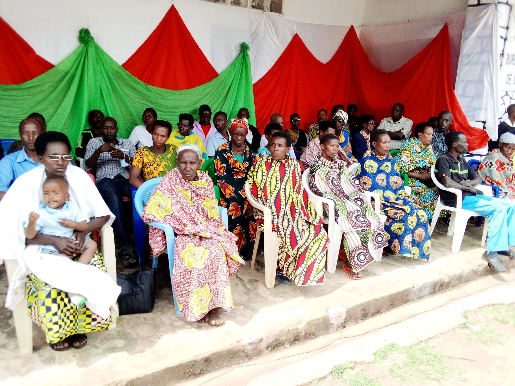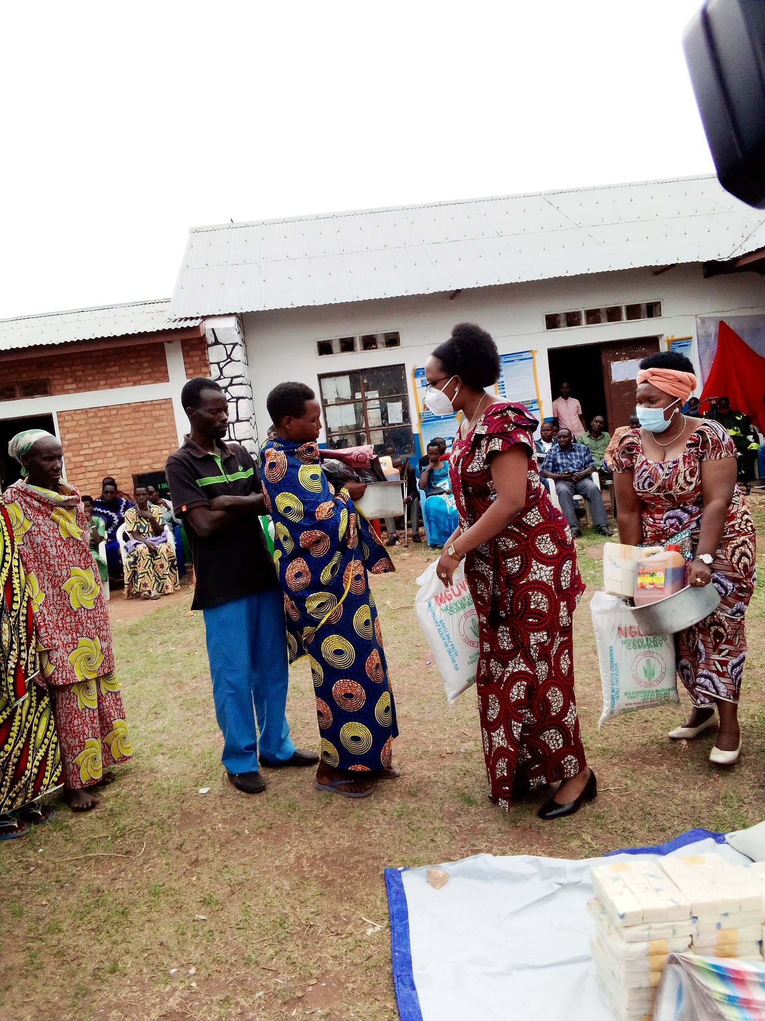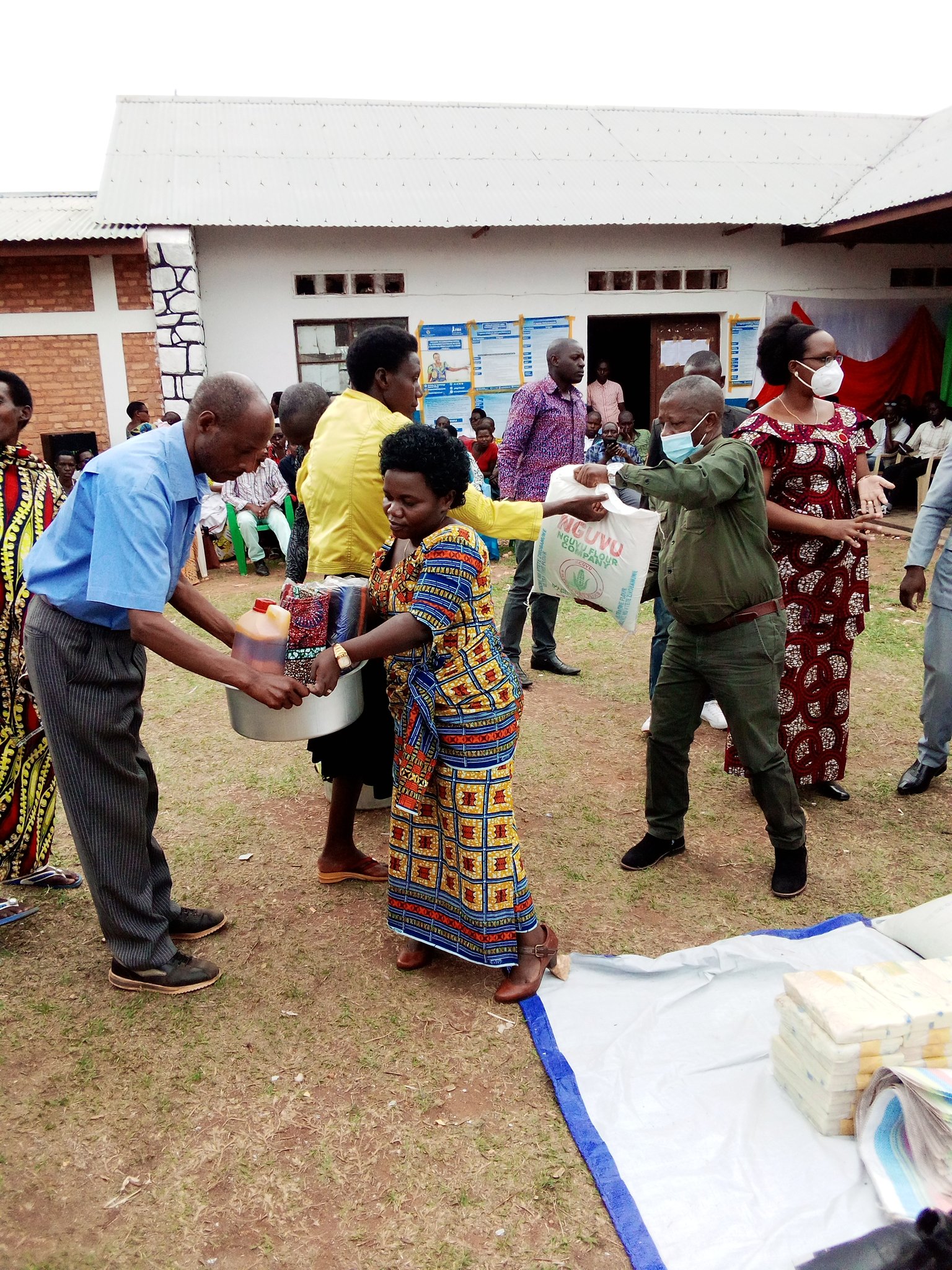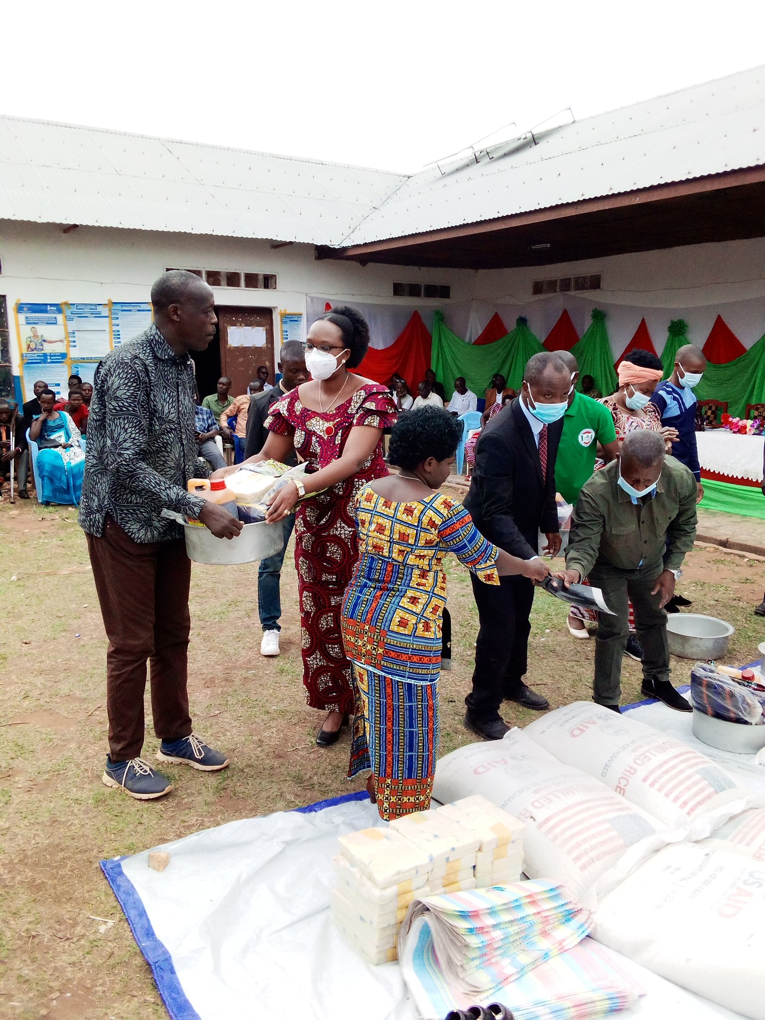 Reçues par M. NITUNGA Gratien, Administrateur communal de GISAGARA . Accompagnée de Mme NIJIMBERE Marie Chantal, Ministre burundaise de la Communication,des TI et des Médias. Mme SABUSHIMIKE Imelde, Ministre burundaise de la Solidarité Nationale, organisait une activité. Venant au secours de 29 familles. Ayant été victimes de l’ effondrement d’une église en cours de construction dans la localité. Donnant à chaque famille : 1 sac de farine de maïs ; 1 couverture; 1 pagne; 1 houe; 1 carton de savons de lavage; 1 casserole; et 5l d’ huile de palme. Offrant aussi 1 grand sac de riz partagé par 3 familles. Remerciant fortement les familles avoisinantes pour leur esprit de solidarité.