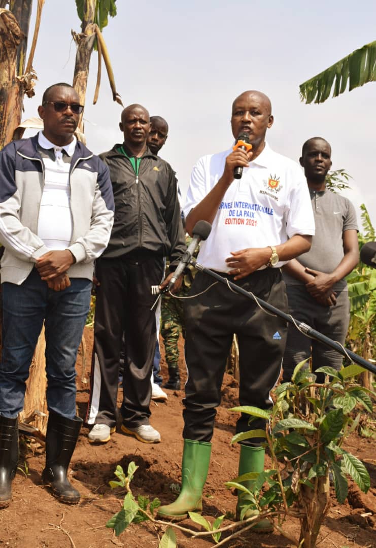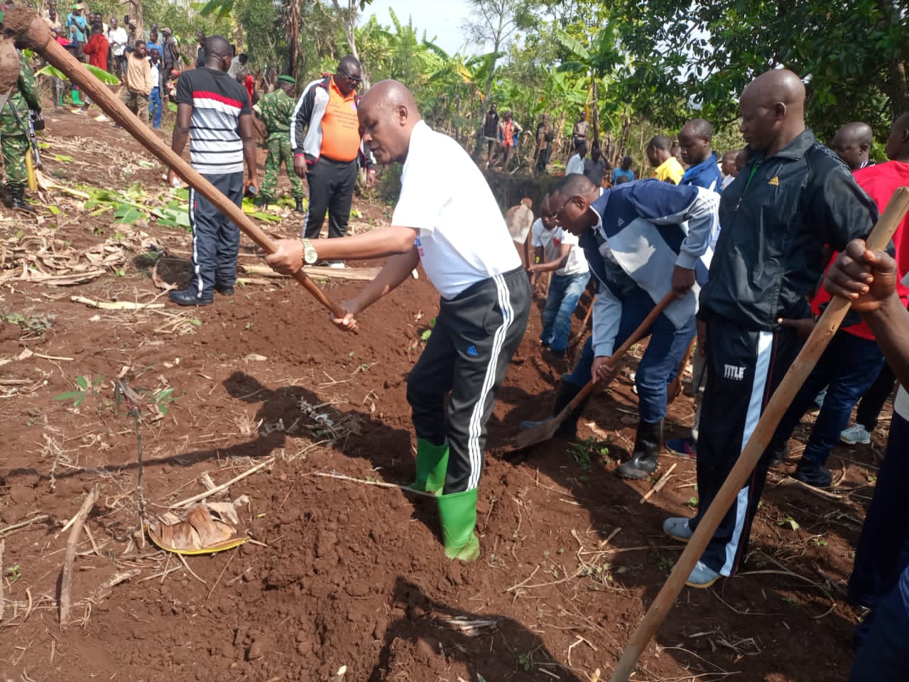 MURAMVYA ( Commune RUTEGAMA ), 30/09/2021 – Reçu par M. NIYIMBONA Stany, Administrateur communal de RUTEGAMA. S.E. BAZOMBANZA Prosper, Vice-président du BURUNDI, participait, pelle en main, avec les citoyens de cette localité, aux TRAVAUX DE DEVELOPPEMENT COMMUNAUTAIRE (TDC). Consistant au traçage des courbes de niveaux sur la colline NKONYOVU.