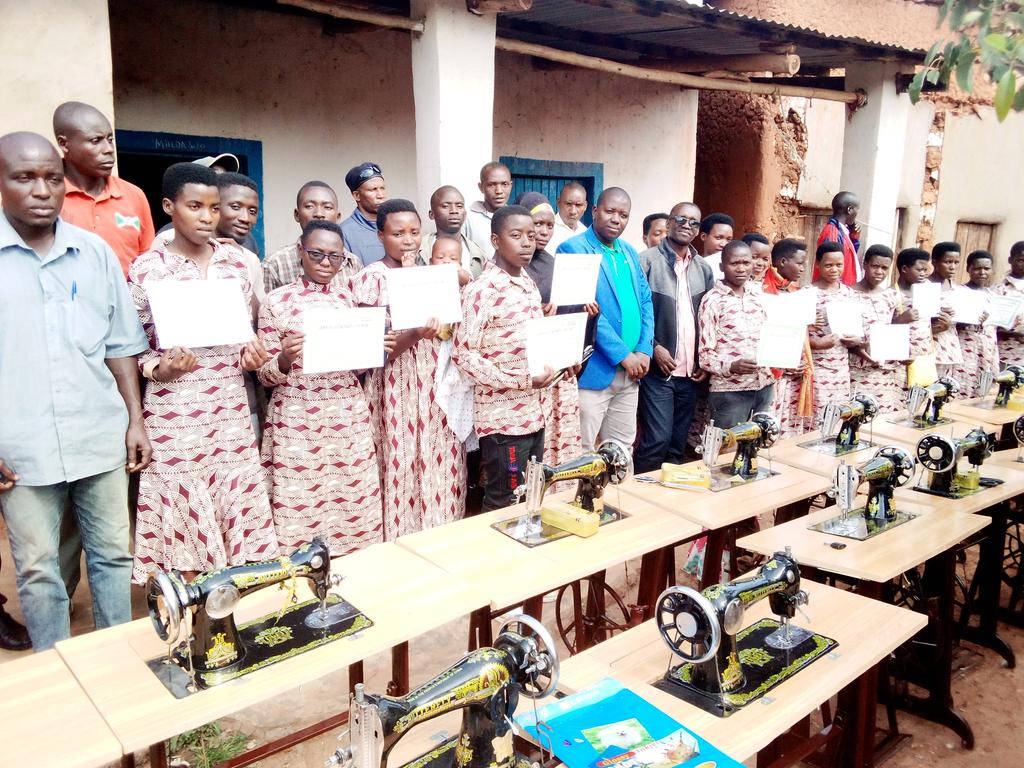 KIRUNDO ( Commune BUSONI ), 30/09/2021 – L’ONGe américaine, évangéliste, –Food for the Hungry – [ https://www.fh.org/ ] finissait une formation de couture à 15 jeunes. Leur offrant leurs certificats et une machine à coudre à chacun.
