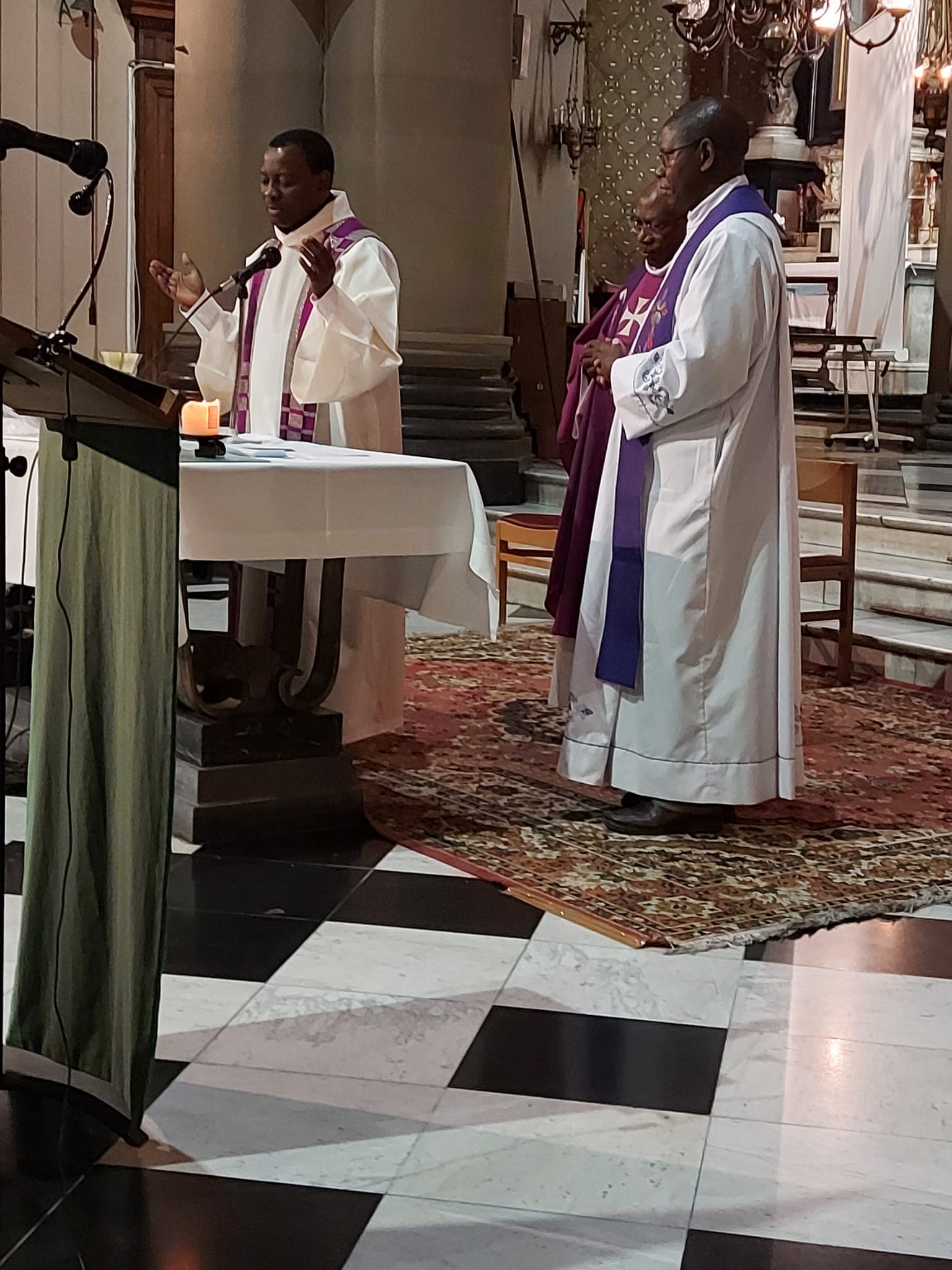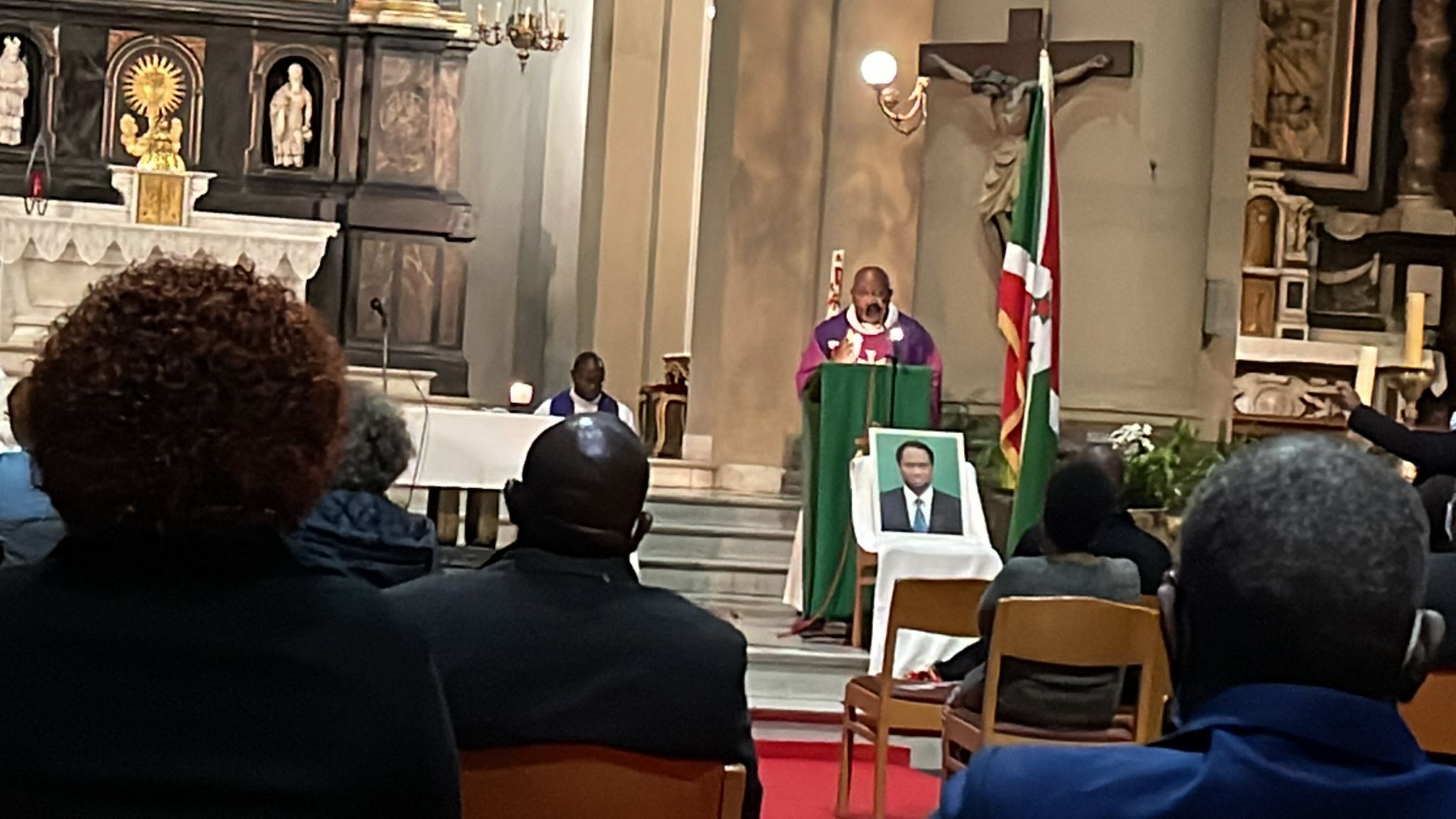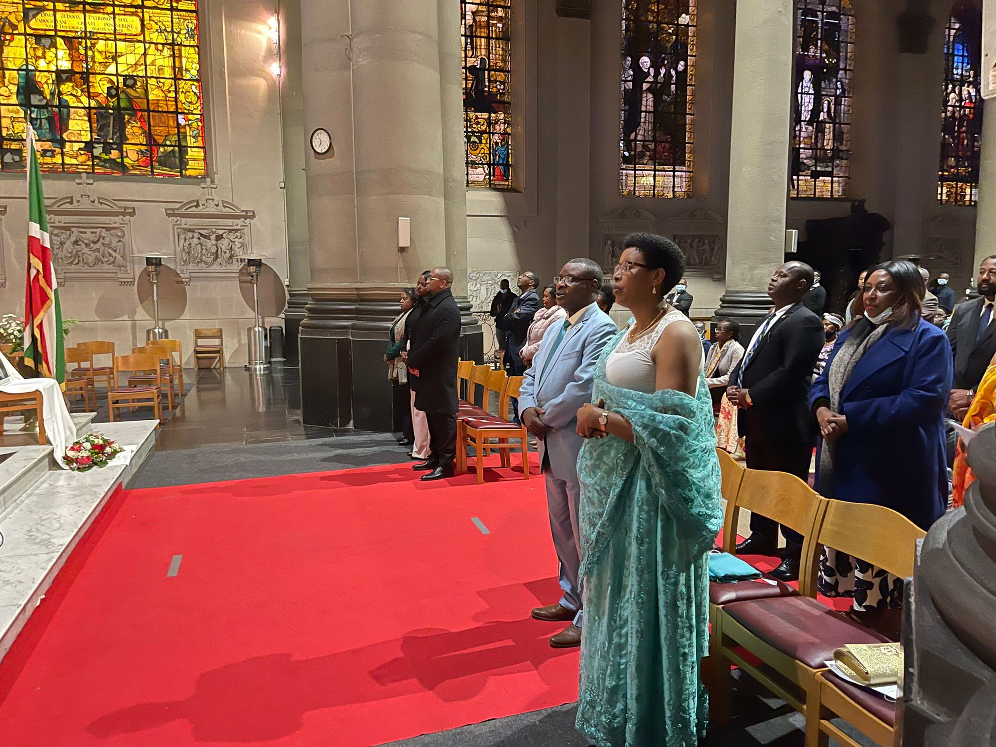 BRUXELLES, 21/10/2021S.E. NTAHIRAJA Thérence, Ambassadeur du BURUNDI en BELGIQUE, organisait une messe et une réception en BELGIQUE. Commémorant le 28ème anniversaire de l’assassinat de Feu S.E. NDADAYE Melchior, héros de LA DEMOCRATIE AU BURUNDI.