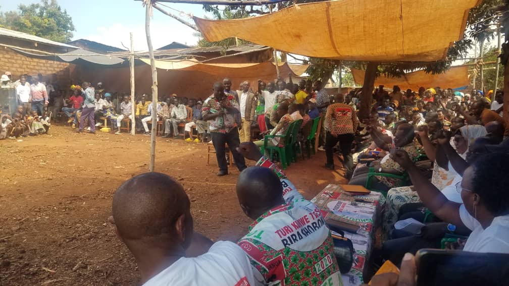 CIBITOKE ( Commune RUGOMBO ), 25/10/2021 – La Section Collinaire CNDD-FDD RUKANA2 accueillait des nouveaux militants, provenant d’autres formations politiques dans la colline RUKANA2. Organisant une réception digne pour ces nouveaux BAGUMYABANGA( nom des militants CNDD-FDD ).