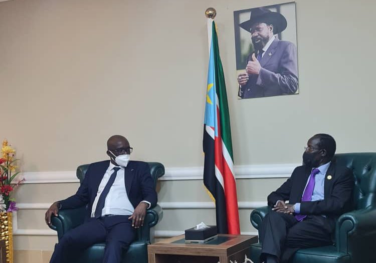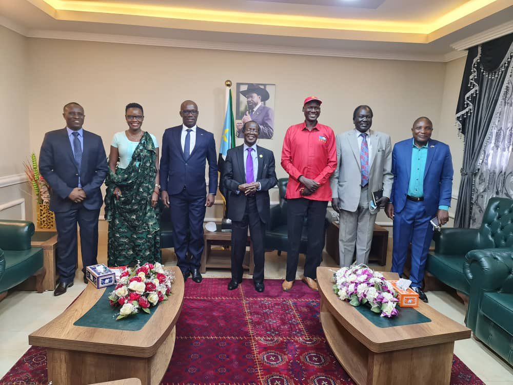 SUD SOUDAN, 3/11/2021– Accompagné en voyage au SUD SOUDAN des membres de son bureau. L’Hon. NDIKURIYO Réverien, Secrétaire Général du CNDD-FDD, a rencontré l’Hon. WANI IGGA James, Vice Président du parti Sudan People’s Liberation Movement – SPLM. S’étant rendu auparavant au mausolée du Dr GARANG John, Fondateur de la nation Sud Soudanaise. Y déposant une gerbe de fleurs en signant dans le Livre d’Or. Louant le courage de ce grand héros. Visitant aussi le stade de JUBA en construction. Rencontrant les responsables de la fédération de football au SUD-SOUDAN.