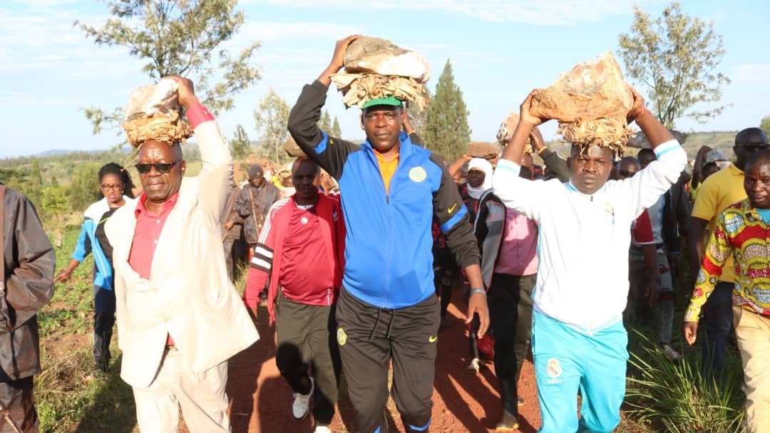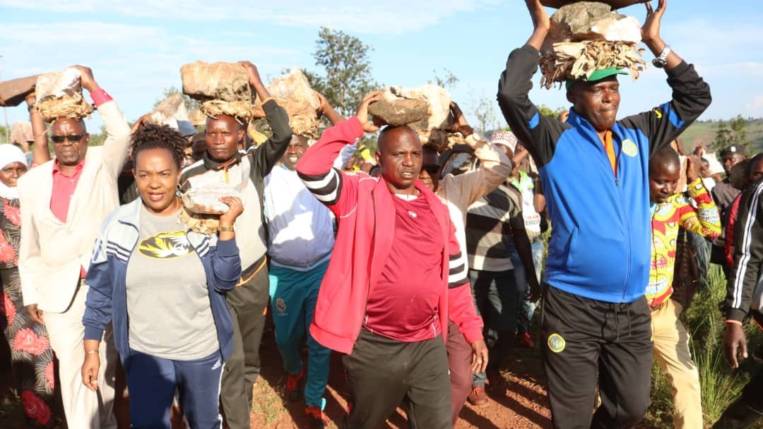 MUYINGA ( Commune BUTIHINDA ), 11/11/2021 – Reçue par M. RUBERANDINZI Rénovât, Administrateur Communal de BUTIHINDA. Accompagnée des élus de la localité. L’Hon. Dr. NTAKARUTIMANA Sabine, Vice-Présidente de l’Assemblée Nationale du BURUNDI, participait, avec les citoyens de la zone BUVUMBI, aux Travaux de développement Communautaire [ TDC – http://bdiagnews.com/TDC ]. Consistant à porter des bloques de pierres sur la tête. Les amenant sur le chantier de construction du CENTRE DE SANTE DE ZAGA.
