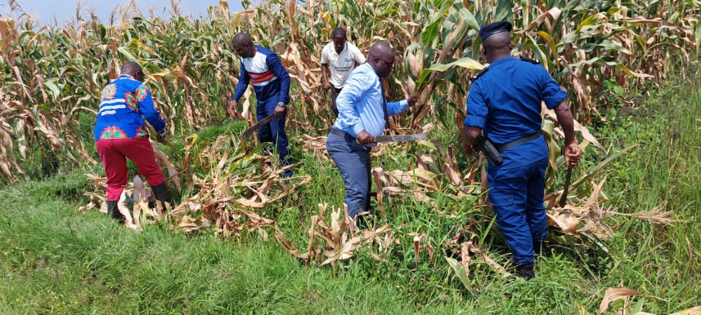RUMONGE, 10/11/2021 – M. NITUNGA Consolateur, Gouverneur de RUMONGE, participait à une activité champêtre locale citoyenne à GATAKWA en zone KIGWENA, avec à ses côtés tous les chefs de services provinciaux. Récoltant dans les champs de maïs plantés sur 78 ha au cours de la saison culturale C 2021.