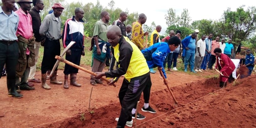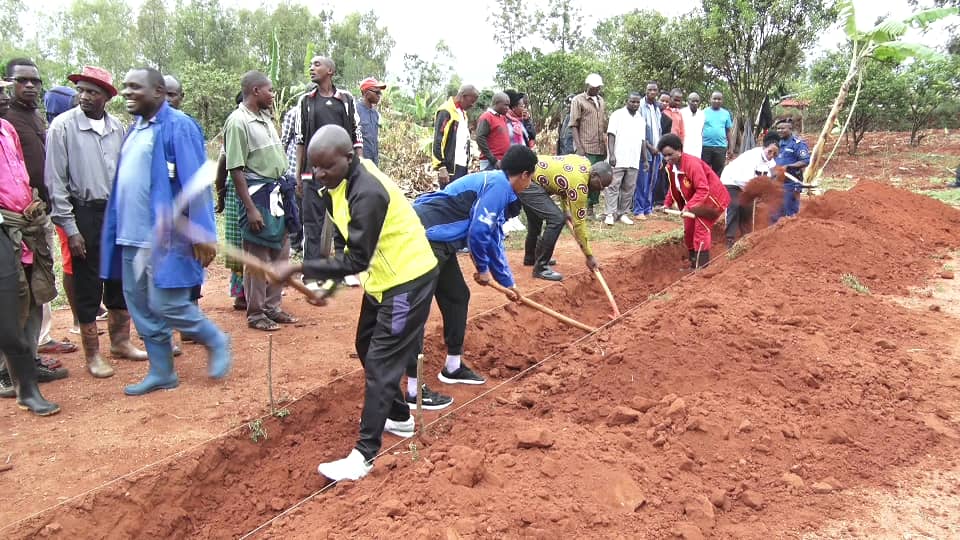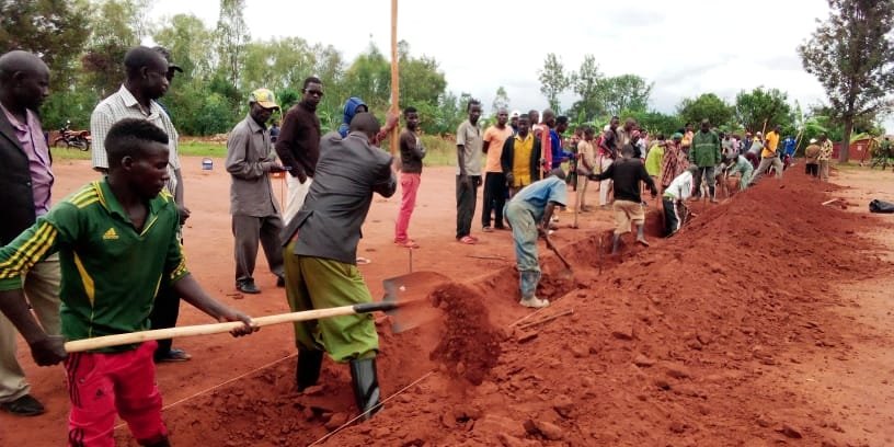 TRAVAUX DE DEVELOPPEMENT COMMUNAUTAIRE : Les citoyens de KAYOGORO tracent des courbes de niveau près de la paroisse catholique de KAYOGORO à MAKAMBA