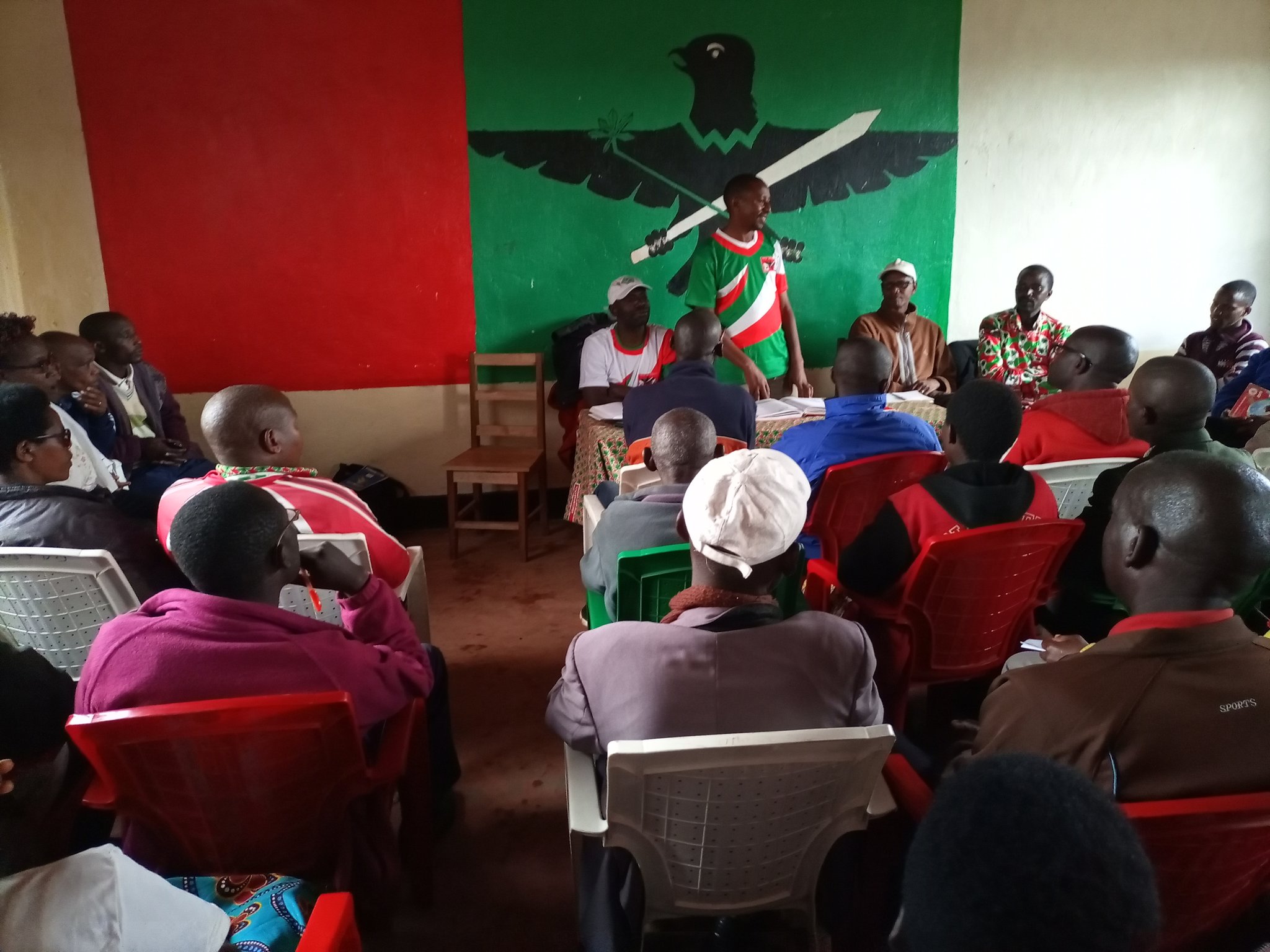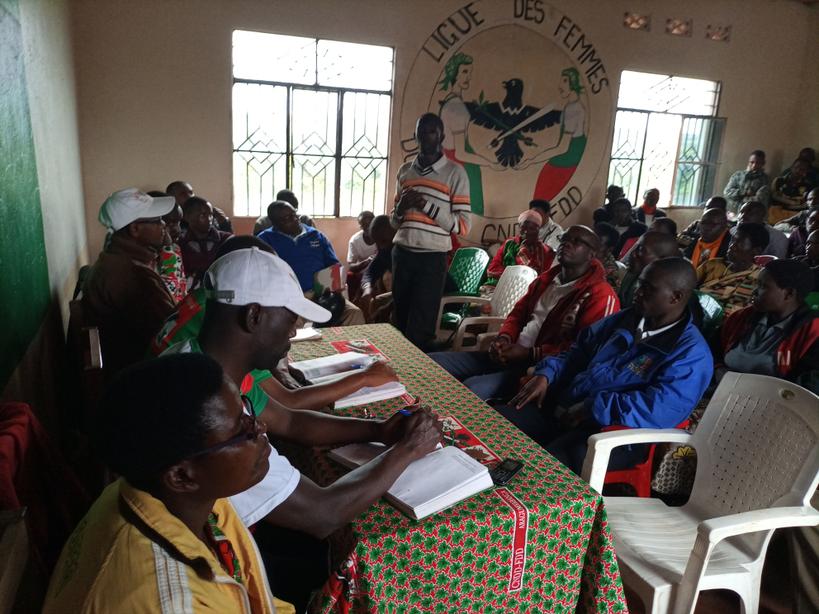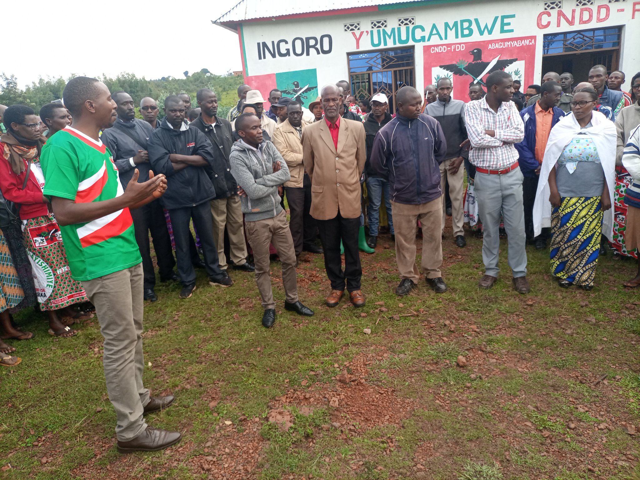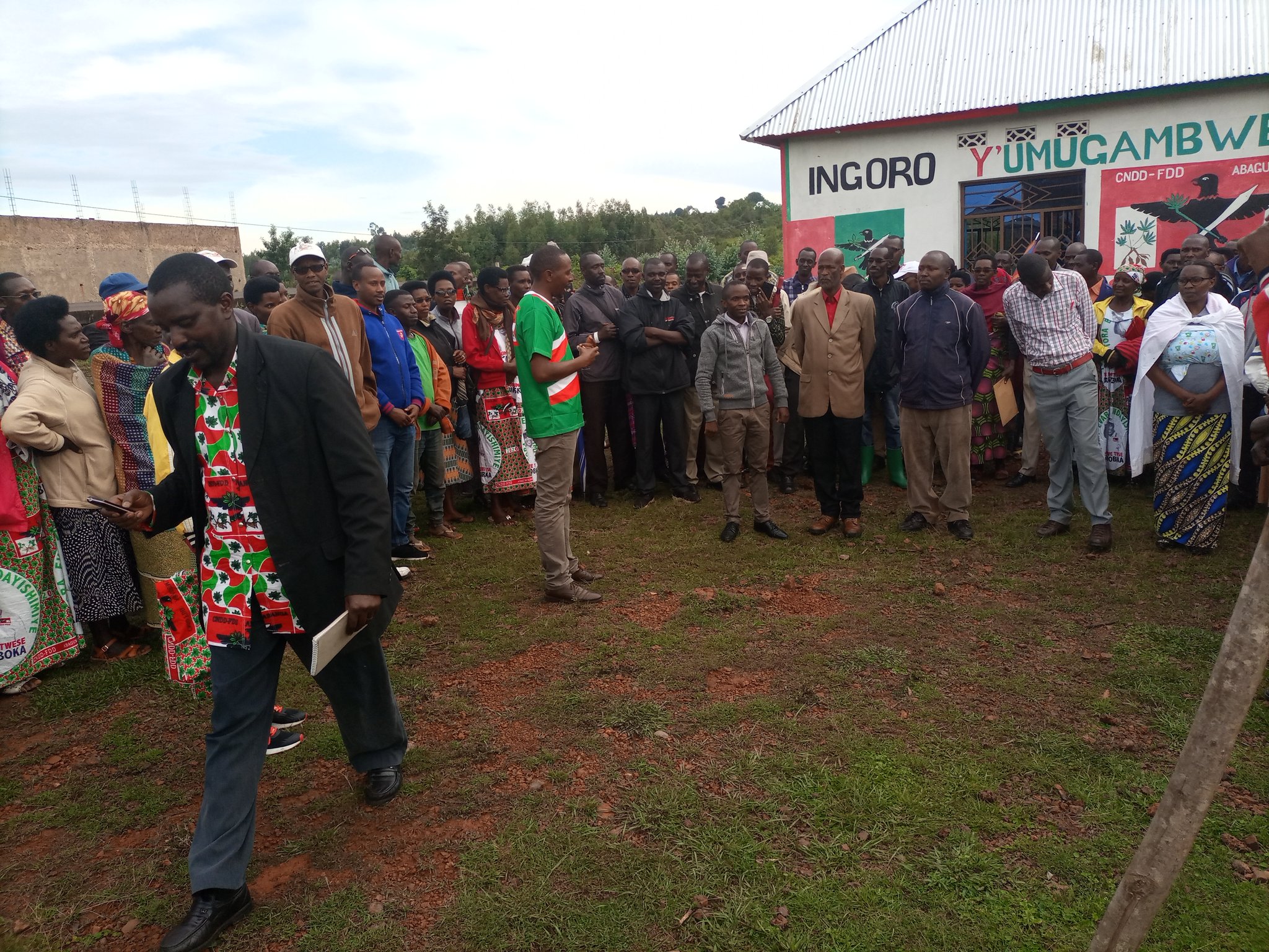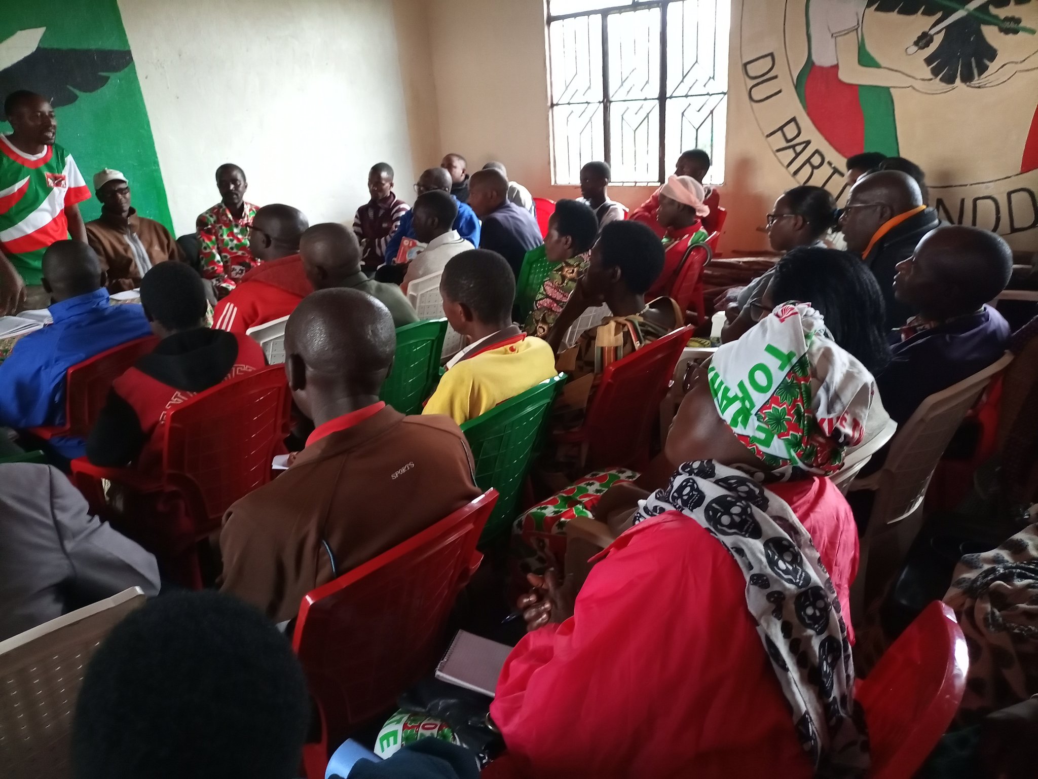 BURURI ( Commune RUTOVU ), 01/12/2021 – M. IRADUKUNDA Dieudonné, Secrétaire Provincial du CNDD-FDD BURURI, était reçu par la Section communale CNDD-FDD RUTOVU. Rencontrant les BAGUMYABANGA ( nom des militants du CNDD-FDD ), notamment les comités collinaires et les cadres administratifs membres du parti au niveau local. Échangeant avec eux sur leur rôle dans le renforcement du parti. Mettant en avant l’appui à LA POLITIQUE SOCIO-ECONOMIQUE DES BARUNDI. Accueillant 6 nouveaux membres en provenance du Congrès National pour la Liberté ( CNL ).