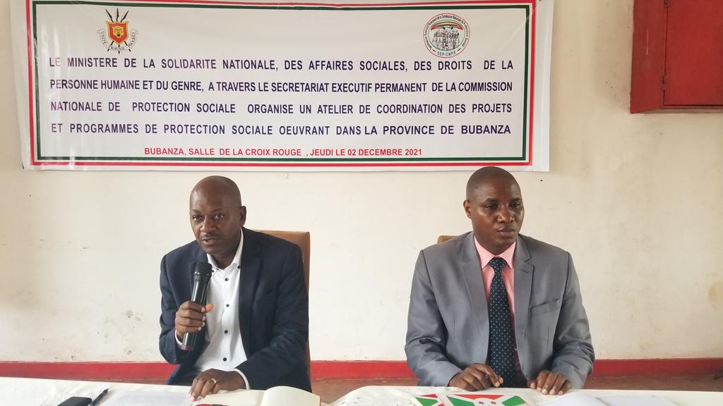 BUBANZA, 2/12/2021 – M. NIZIGIYIMANA Cléophas, Gouverneur de BUBANZA, ouvrait un atelier de travail. Organisé par le Secrétariat Exécutif Permanent de la Commission Nationale de Protection Sociale – SEP/CNPS – du Ministère de la Solidarité,des affaires Sociales, des Droits de la Personne Humaine et du Genre. Activité coordonnant les projets et les programmes de protection sociale de la province et échangeant sur les activités des partenaires.