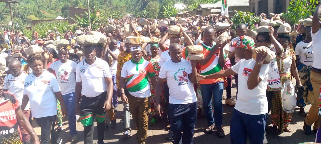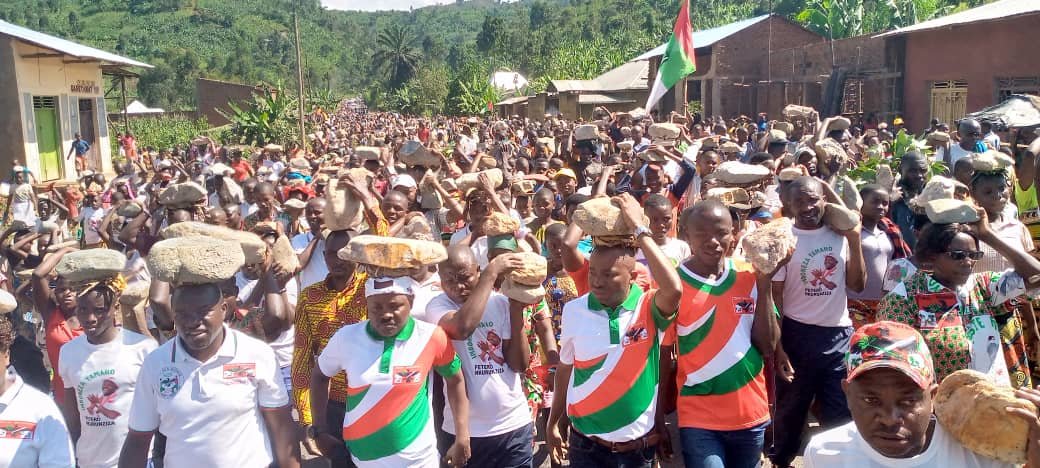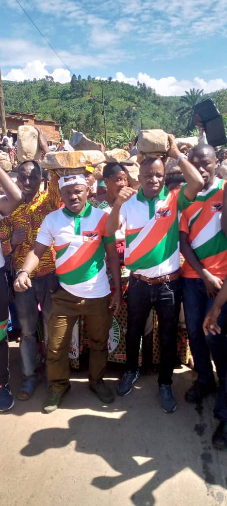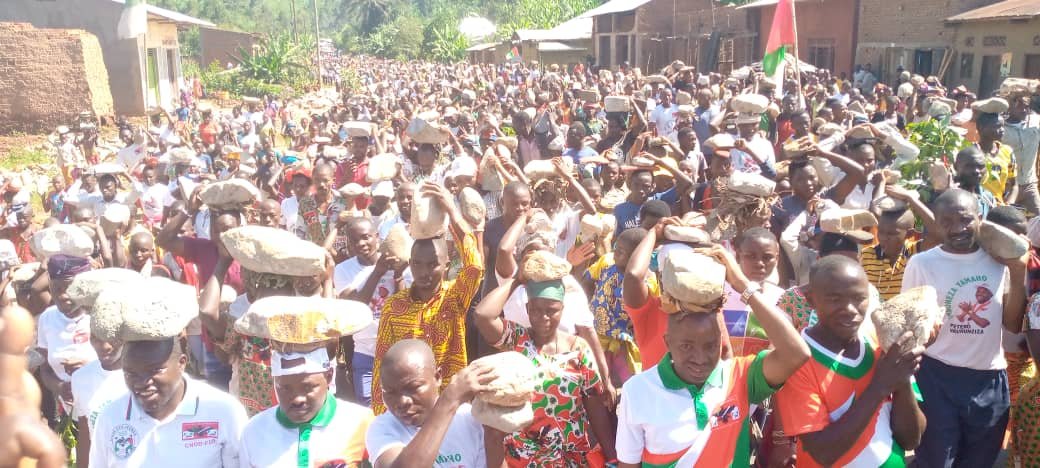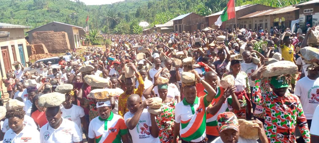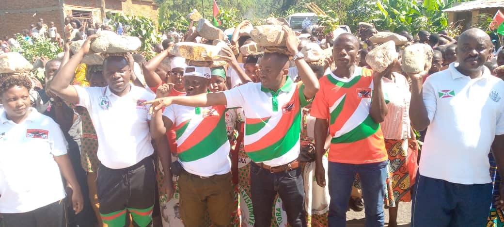 BUJUMBURA ( Commune MUBIMBI ), 11/12/2021 – Arrivés par milliers, soit une véritable démonstration de force locale. Se rassemblant ensemble le long de la route RN1. Portant chacun un bloc de pierre. Destiné à la construction… Les BAGUMYABANGA ( nom des militants du CNDD-FDD ) avec les IMBONERAKURE ( nom des jeunes militants du CNDD-FDD ) de la Section Communale CNDD-FDD MUBIMBI, organisaient des Travaux de Développement Communautaire [ TDC – http://bdiagnews.com/TDC ]. Consistant à construire une école sur la colline BIHANDA.