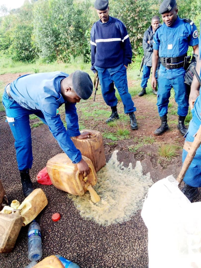 La police déverse 105 litres de boissons prohibées « umudring » à RUGENGE en colline GIHINGA, MWARO