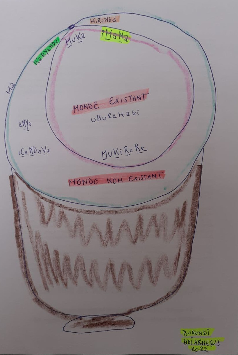 Le « Monde Non Existant » est symbolisé par MuKaKaRYenDA. Puis, le « Monde Existant », par iMaNa, matérialisé par la présence du Tambour -iNGoMa- appelé KaRYeNDa ( prononcé KaGeNDa ). KaRYeNDa étant l’époux de MuKaKaRYenDA.