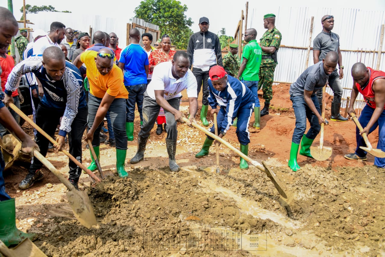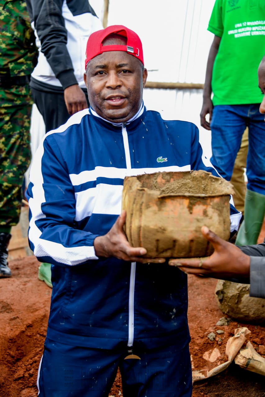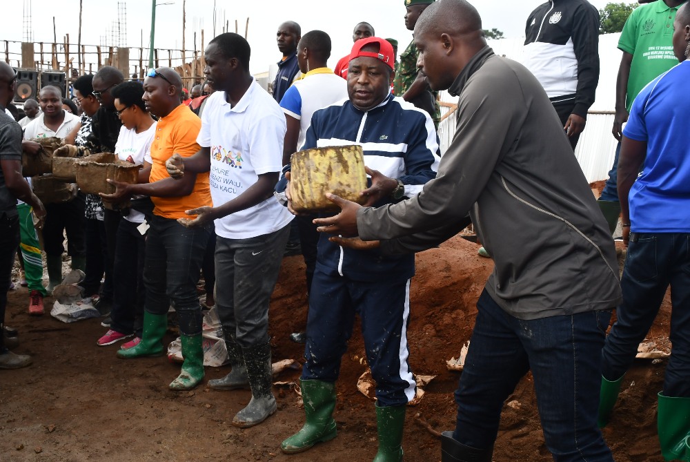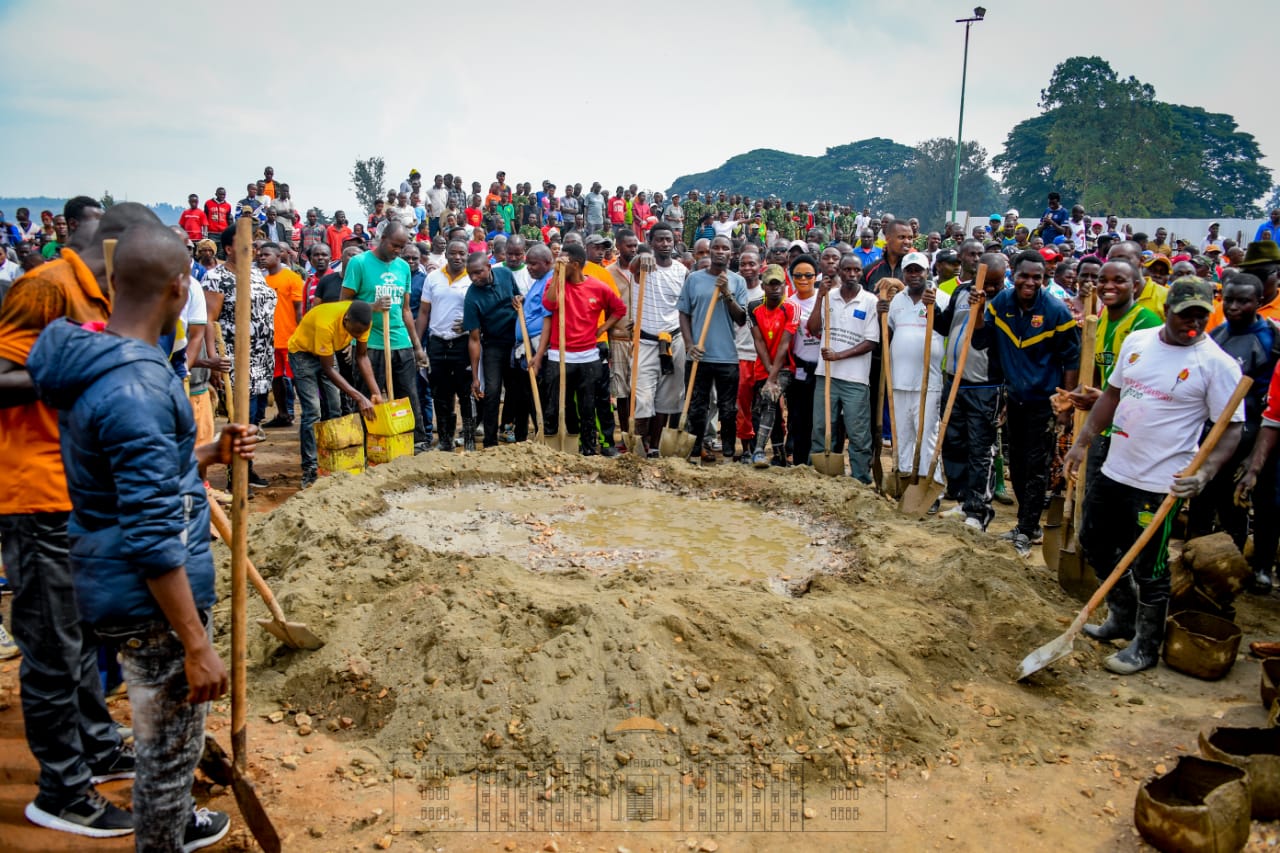 S.E. NDaYiSHiMiYe Evariste ( Général Major ), Président du BuRuNDi, s’est joint aux TDC auprès des citoyens locaux consistant à construire un terrain moderne de volley-ball.