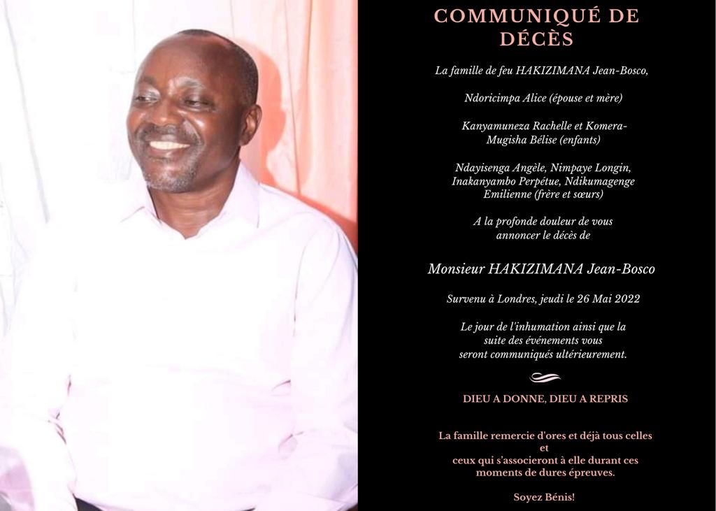 Ce jeudi 26 mai 2022, depuis Londres en Angleterre, c’est avec très grand regret que l’on nous a annoncé le grand départ de ce vaillant militant des premières heures de la lutte pour la défense de la démocratie au Burundi.