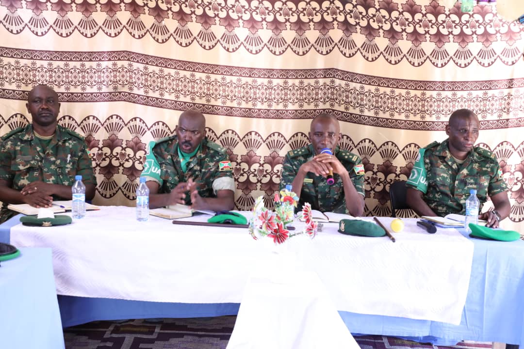 Jeudi et vendredi, le Lieutenant Général Niyongabo Prime, Chef d’Etat Major de la FDNB , visitait les troupes burundaises de l’AMISOM/ATMIS. Après avoir tenu une minute de silence envers les soldats Barundi tombés au cours de cette mission de paix, il s’est entretenu avec les officiers en leur recommandant de mener des combats contre les Al shabaabs partout où ils étaient retranchés. Les encourageant à continuer la noble mission d’aider le peuple somalien à retrouver la paix chez eux.