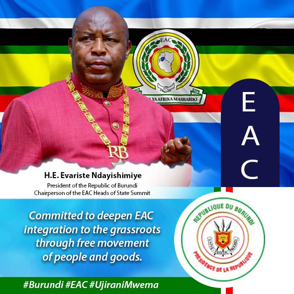 S.E. Ndayishimiye Evariste ( Général Major ), Président du Burundi , devient aussi Président de l’EAC.