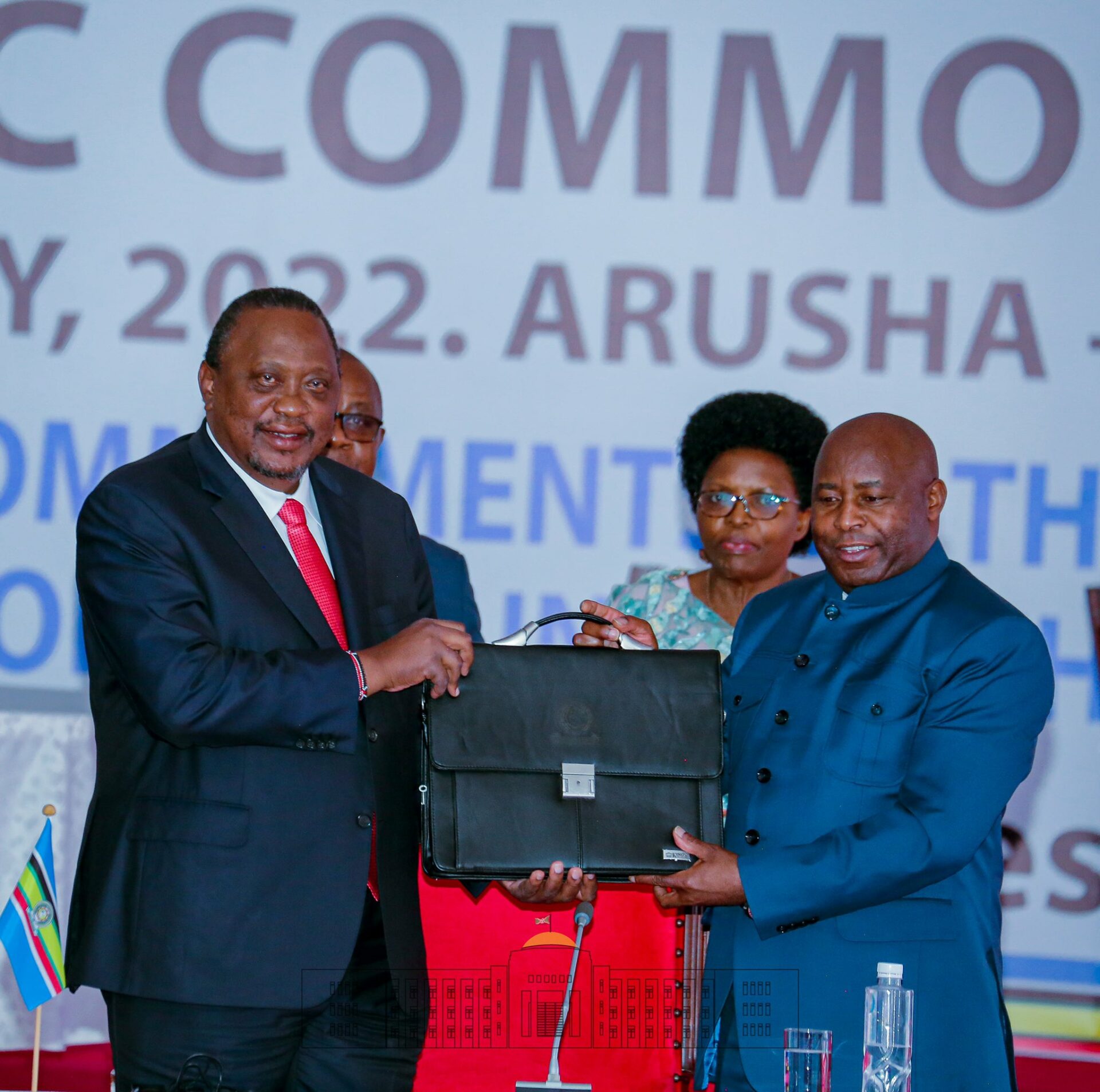 Arusha (Tanzanie), 22/07/2022 – A l’issu du 22ème sommet des chefs d’état des pays de l’East African Community (EAC) [1], S.E. Ndayishimiye Evariste ( Général Major ), Président du Burundi, a reçu la Présidence tournante de l’ EAC de la main du Président sortant S.E. Uhuru Kenyatta, Président du Kenya. S’engageant à aider à préserver la paix dans cet ensemble et à œuvrer pour une meilleure intégration à travers la promotion de la libre circulation des personnes et des biens. Voici son discours lors de cette rencontre : [ https://www.burundi-forum.org/wp-content/uploads/2022/07/SPEECH-BY-HE-PRESIDENT-OF-BURUNDI-EAC-SUMMIT-2022.pdf ]