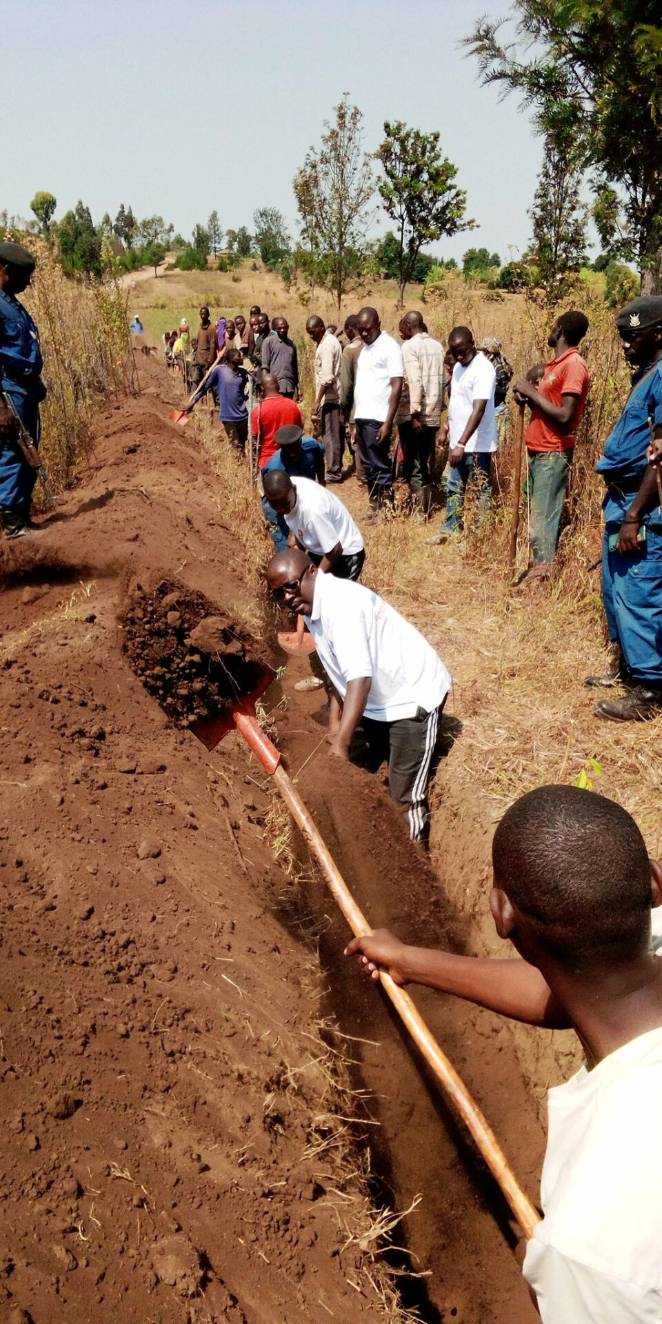Ce jeudi, les citoyens de la commune Gisagara, autour de M. Nitunga Gratien, Administrateur communale de Gisagara, participaient, en présence de M. Banyiyezako Boniface, Gouverneur de Cankuzo, aux TDC en colline Muganza, consistant à tracer des courbes de niveaux pour la protection de l’environnement.